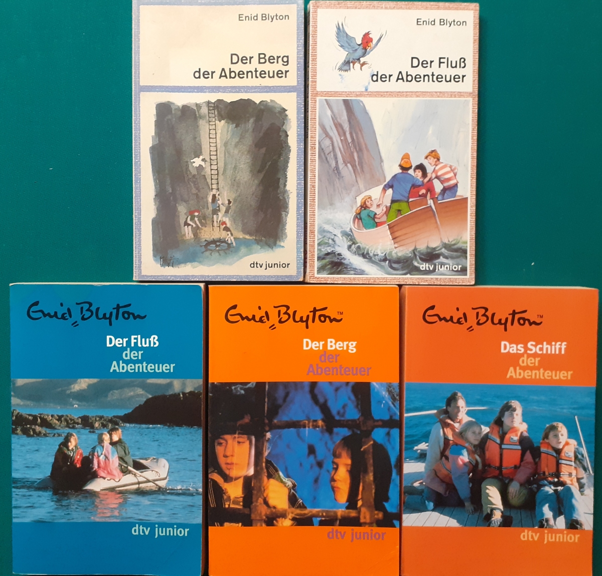 (obere Reihe): Die Enid Blyton - Abenteuer-Reihe aus den 1990er Jahren, jeweils mit den Zeichnungen der englischen Originalausgaben von Stuart Tresilian (untere Reihe): |