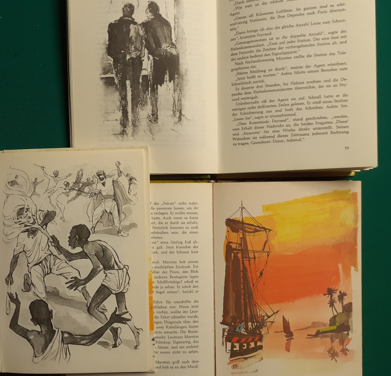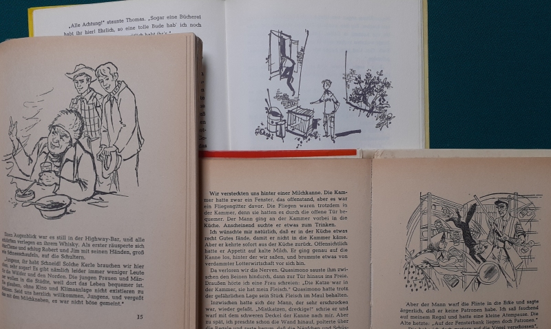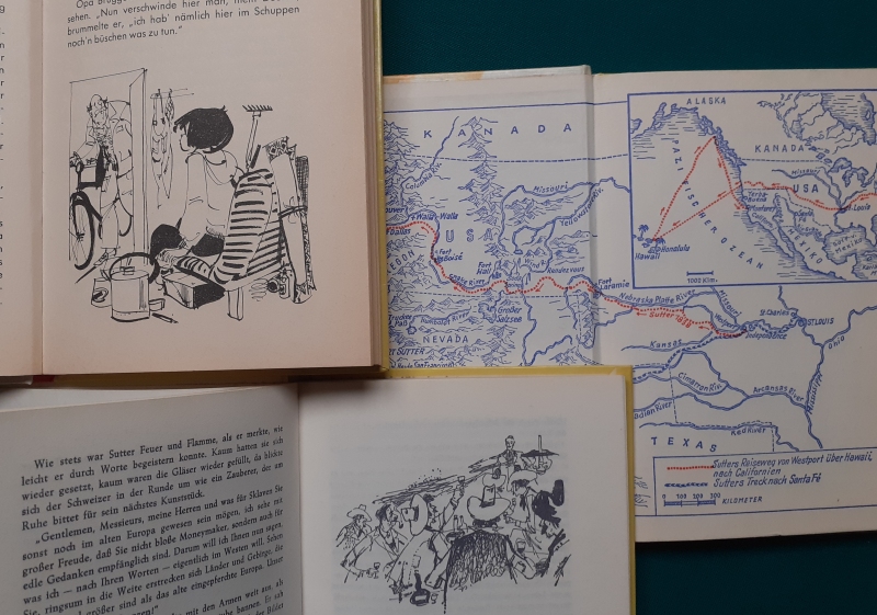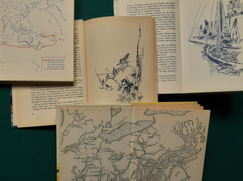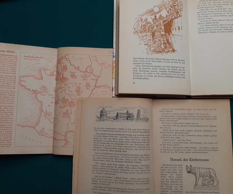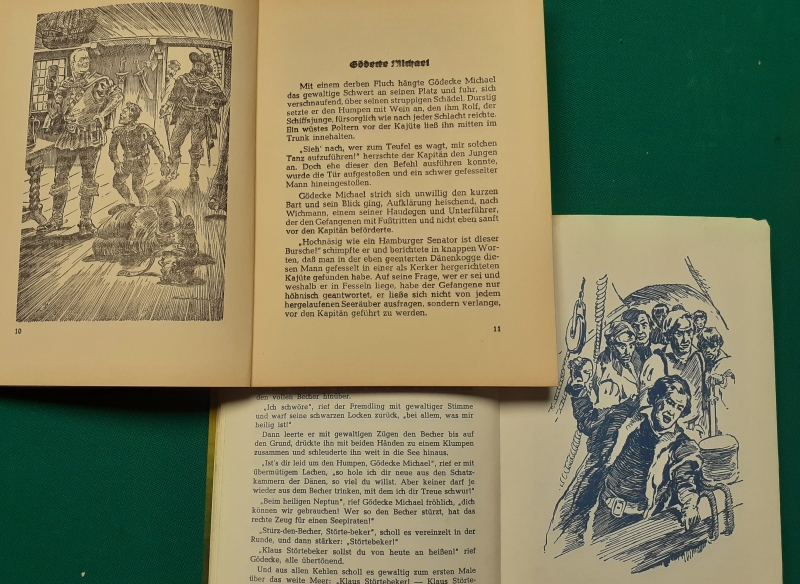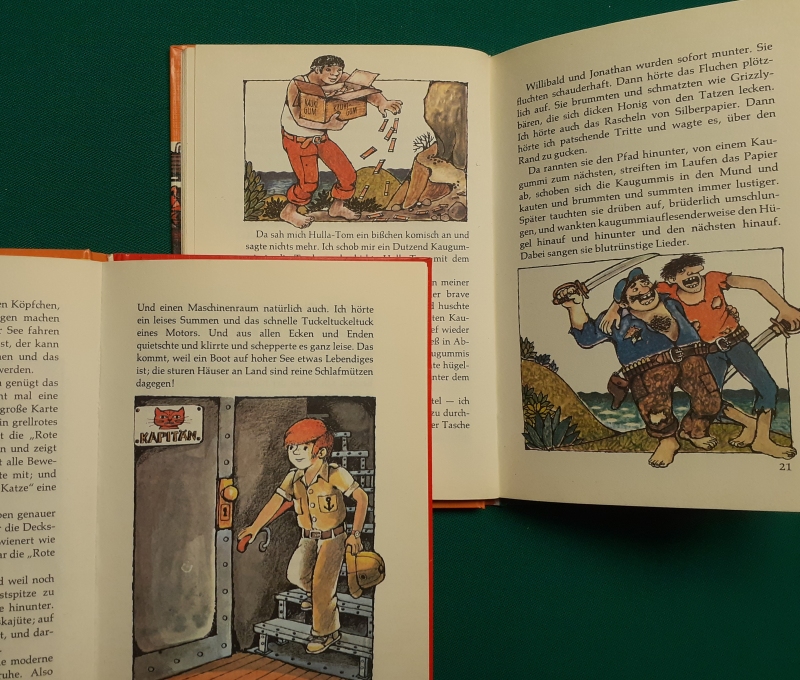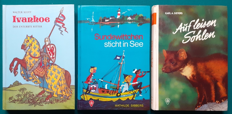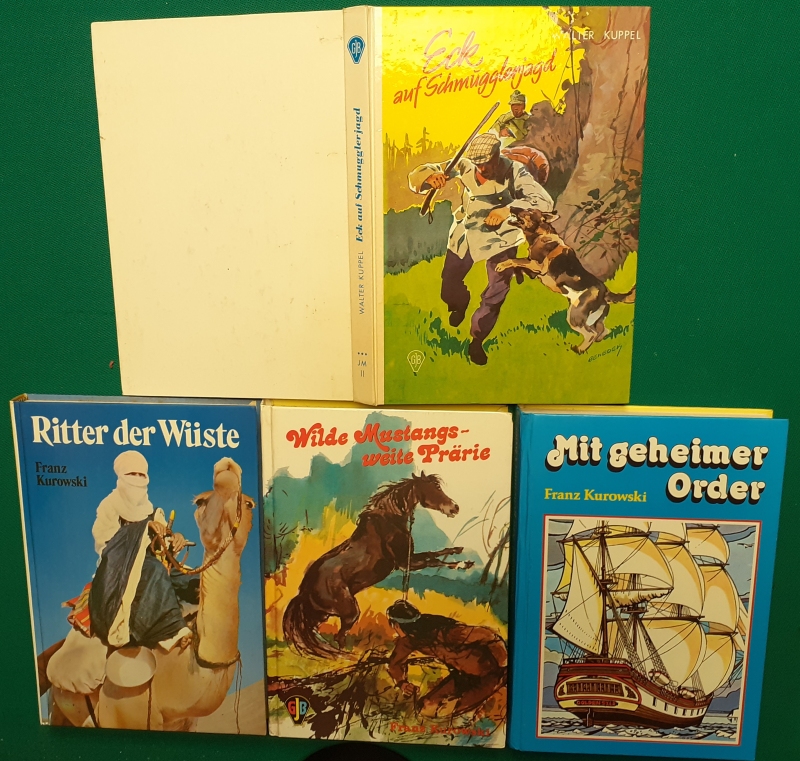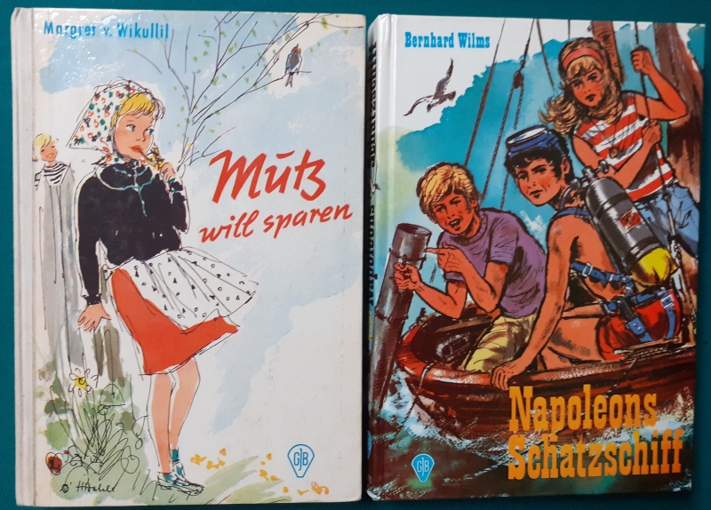 Wikullil: Mutz will sparen Ausgabe um 1960; großer GJB-Geschenkband, Illustrationen von Helga Wahle, 114 Seiten, Leinenrücken mit festem lackierten Hartpappeinband; guter altersgemäßer Zustand Preis: 6 EUR Hier zur Illustratoren-Galerie mit typischen Arbeiten von Helga Wahle Bernhard Wilms: Jugendbuchautor; geb. 1916 in Duisburg; gest. 1994 in Sankt Ingbert Napoleons Schatzschiff Ausgabe von 1973, 138 Seiten, Illustrationen von Franz Reins, guter altersgemäßer Zustand Preis: 6 EURO Hier zur Illustratoren-Galerie mit typischen Arbeiten von Franz Reins |