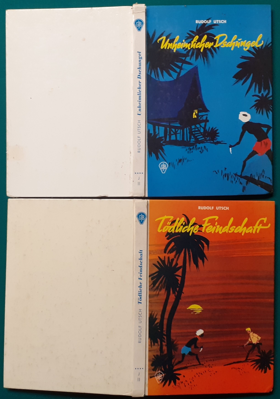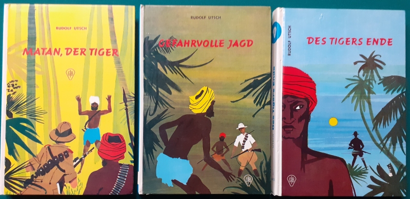 Band: Des Tigers Ende Rudolf Utsch (geb. am 31. Januar 1903 in Brachbach/Sieg; gest. am 30. November 1960 in Kirchen/Sieg) war ein deutscher Schriftsteller. Rudolf Utsch war Verfasser von Romanen, Erzählungen und Theaterstücken. Nachdem die Handlungen seiner Schriften anfangs vorwiegend in seiner Siegerländer Heimat angesiedelt waren, schrieb er seit den 1940er Jahren auch exotische Abenteuerromane für Jugendliche. Hier zur Illustratoren-Galerie mit typischen Arbeiten von Kurt Schmischke |