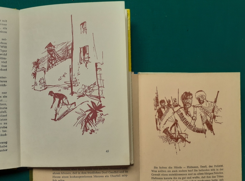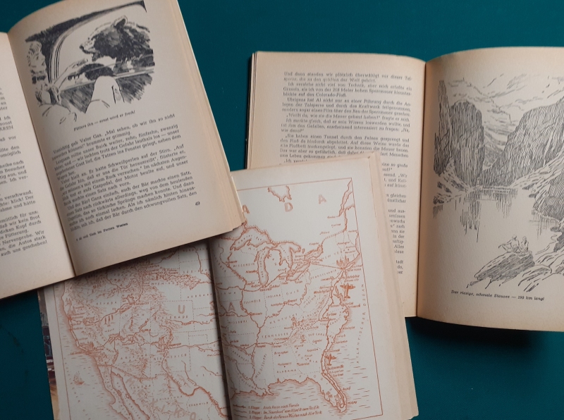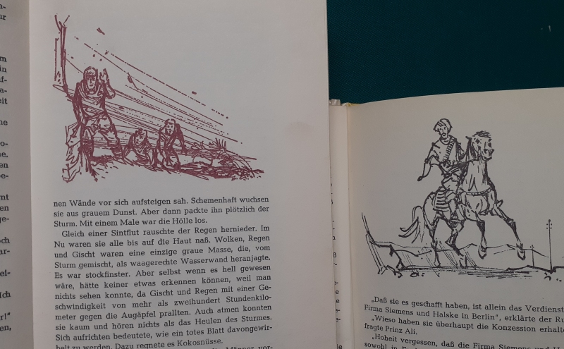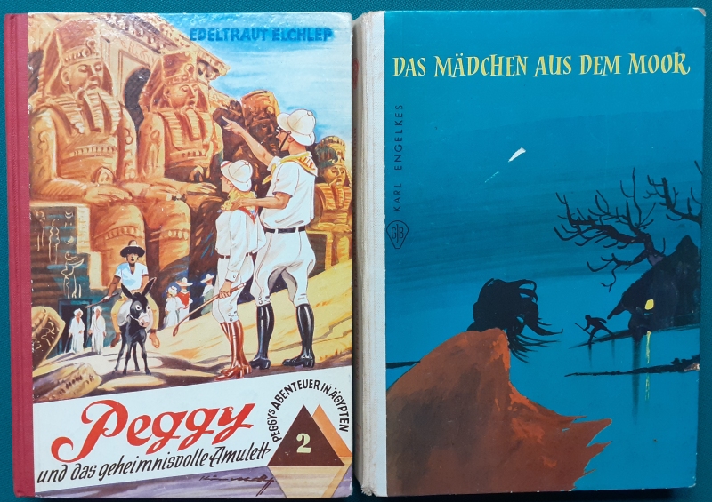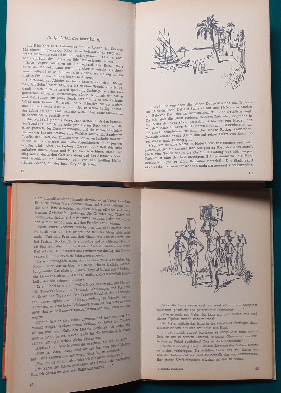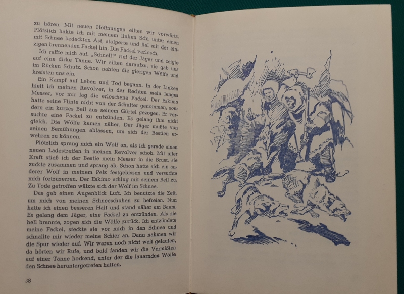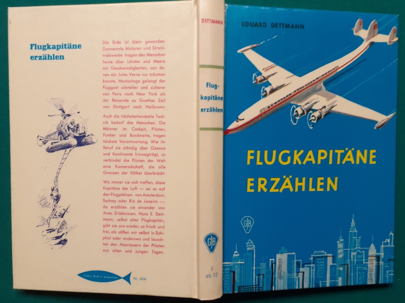 Hans Eduard Dettmann: Ausgabe um 1968, 144 Seiten, Illustrationen von Kurt Schmischke und Carl F. J. Benedek, rundum lackierter fester Hartpappeinband; sehr guter altersgemäßer Zustand, Preis: 6 EURO Hans Eduard Rudi August Dettmann (geboren am 2. Juni 1891 in Charlottenburg; gest. am 1. Mai 1969 in Bad Harzburg) war ein deutscher Schriftsteller. Dettmann arbeitete als Flugkapitän in der deutschen Zivilluftfahrt, ab 1935 in der Luftwaffe. Mit seinen Reisen gewann er den Stoff für mehrere Abenteuerromane für ein jugendliches Lesepublikum. Die Bücher erzielten zum Teil mehrere Auflagen und wurden in den 1950er Jahren in der Bundesrepublik nachgedruckt. Teilnehmer der chinesisch-schwedischen Forschungsreise unter Sven Hedin 1927 - 1935 nach Ostasien. Er verwendete auch das Pseudonym Edward Dann (siehe bei unseren Schneiderbüchern) ...