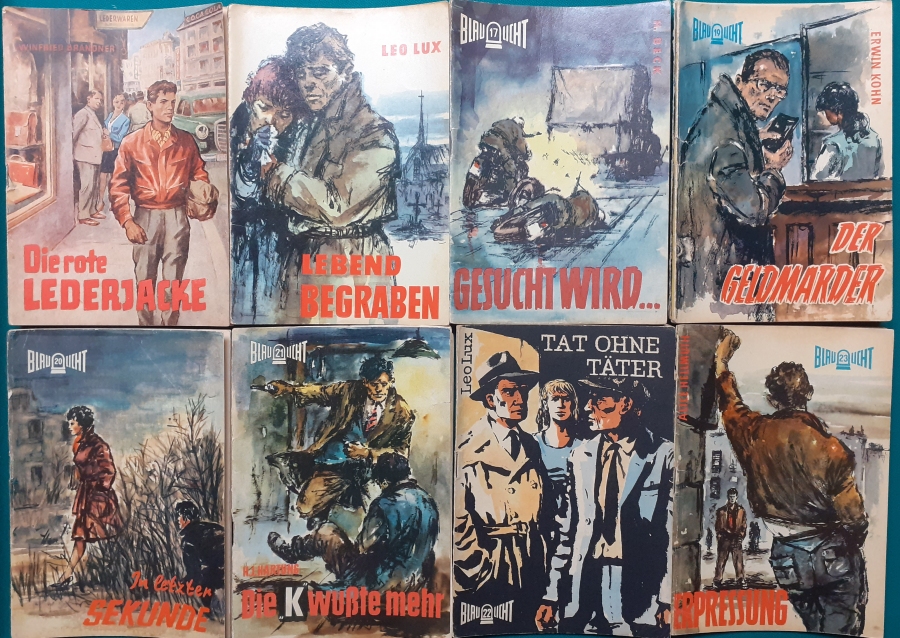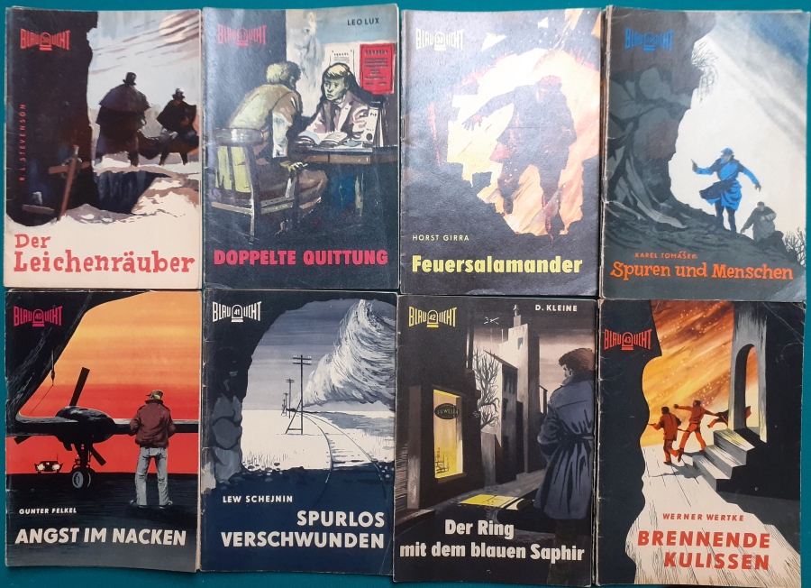 Heftreihe aus dem Verlag des Ministeriums des Innern Berlin; ab 1963 Verlag Das Neue Berlin. Die Reihe erschien von 1958 bis 1990. Die Hefte haben einen unterschiedlichen Umfang - meist 60 bis 80 Seiten. Das Format der ersten Ausgaben (Nummern 1 bis 100) ist jeweils 20 x 14,5 cm; ab Nummer 101 dann 16,5 x 11,5 cm. Die Blaulicht-Reihe ist nicht zu verwechseln mit der Erzählerreihe / Kleine Erzählerreihe. Siehe auch dort ...