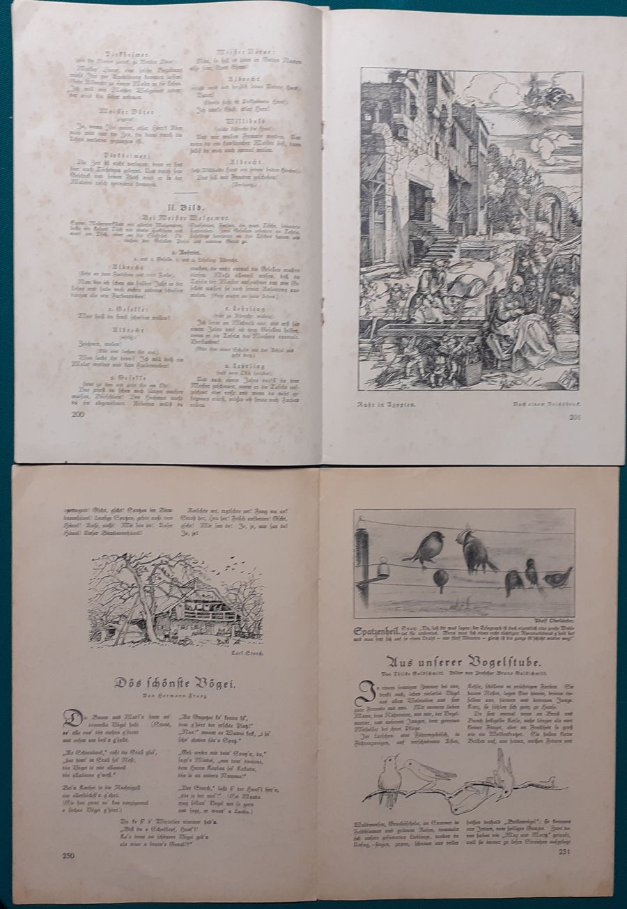 Hermann Schieder: Der Zaunkönig; Sankt Franziskus predigt den Vögeln; Karl Sprigenschmied: Die Starl´n sind da!; Thilde Goldschmtt: Aus unserer Vogelstube |