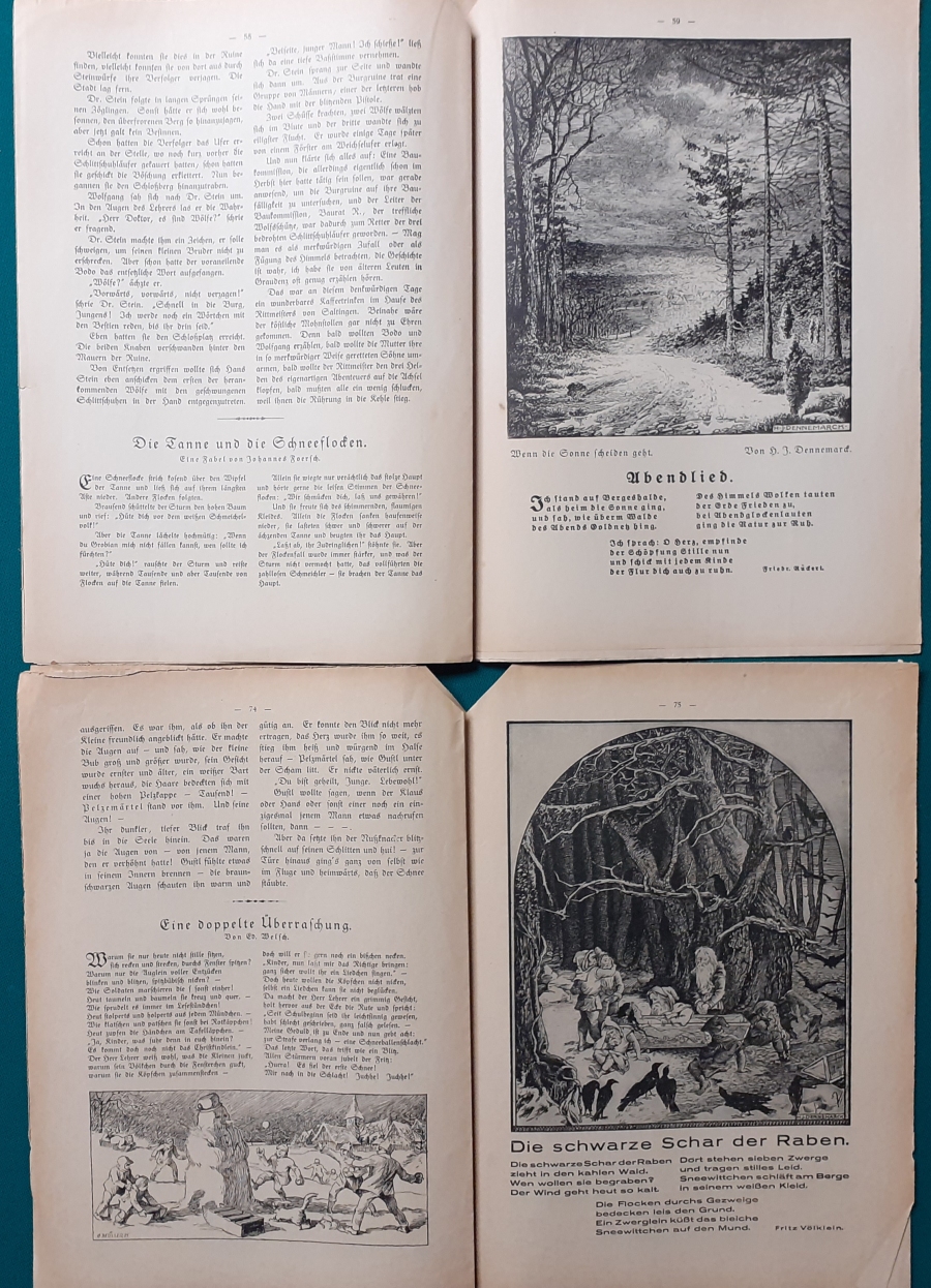 F. Schrönghamer-Heimdal: Das Menschenherz; Wilhelm Pültz: Das spinnende Jungfräulein; Heinrich Scharrelmann: Eine Schlittschuhfahrt |
