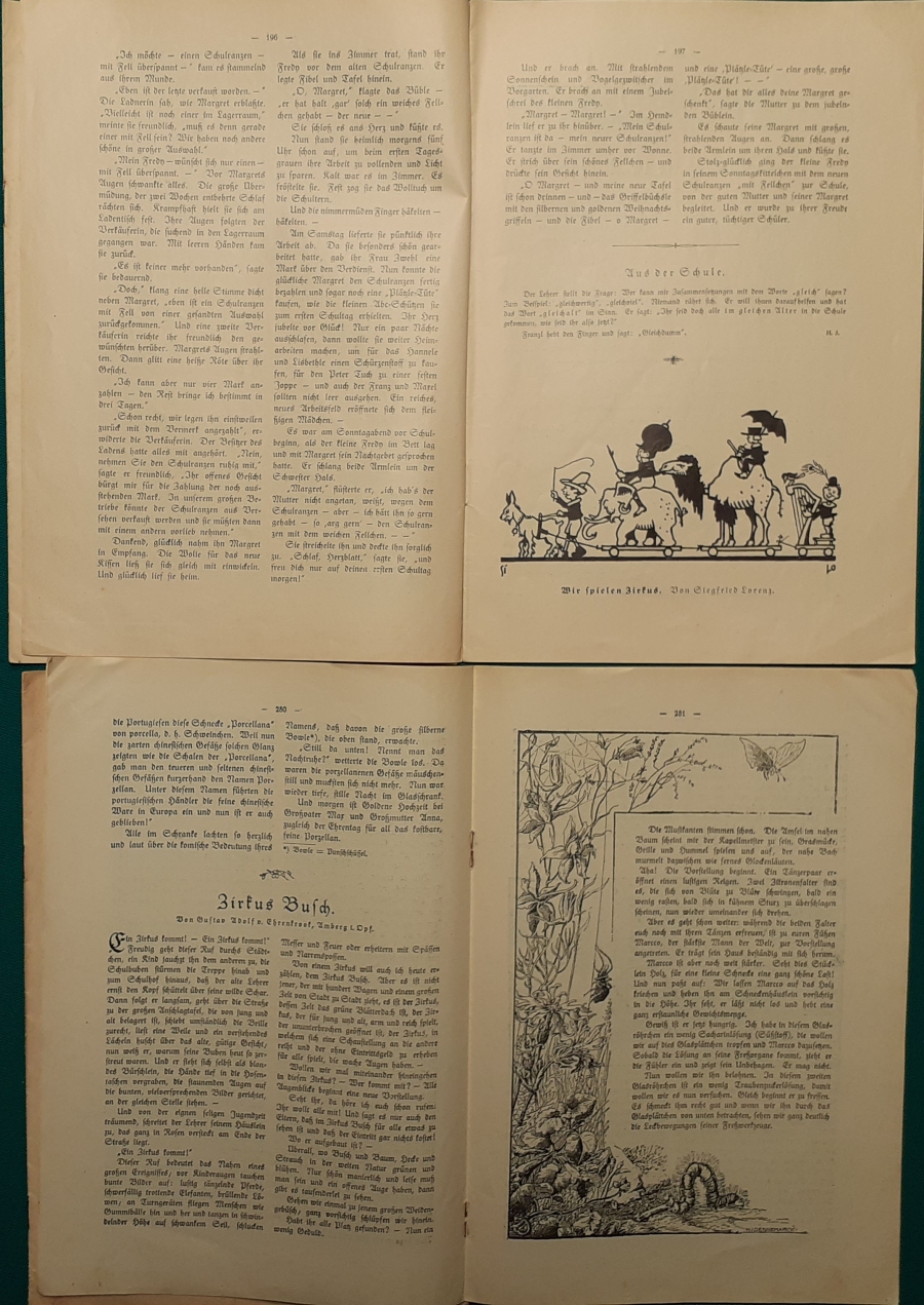 Sonnleitner: Ein gefährliches Spiel; Max Karl Böttcher: In Mutters Glasschrank; Gustav Adolf v. Ehrenkrook: Zirkus Busch; W. Schweisheimer: Ein Rußkörnchen ist ins Auge geflogen |