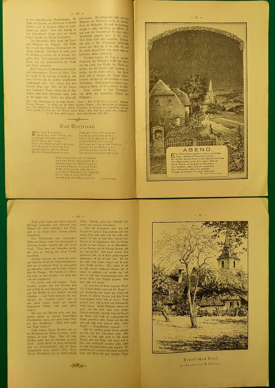 F. Schrönghamer-Heimdal: Vetter, die Bratwurst; H. Kaufnicht: Die Wölfe - Eine Geschichte aus Graudenz; Else Doerfler: Das Müsle; Wilhelm Popp: Der Schäfer am Hohenlandsberg - Eine Steigerwaldsage |