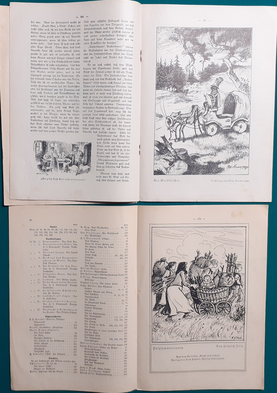 A. H. Vomrhein: Chüngleis Uhr; Johs. Foersch: In Pelzmärtels Klause; Hans Watzik: Heimweg |