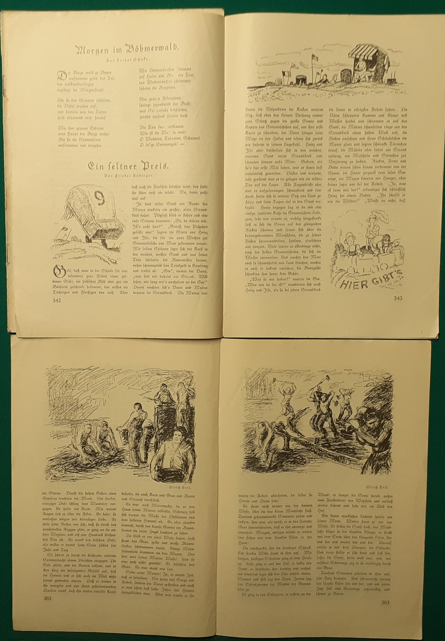 Karl Burkert: Die Weise meiner Mutter; Erich Bockemühl mit Zeichnungen von Hans Lang: Das Auto; Josefine Richter: Die rechte Hand - eine deutsch-böhmische Sage; Martha Roegner mit Zeichnungen von Eugen Oßwald: Fuchsmutter |