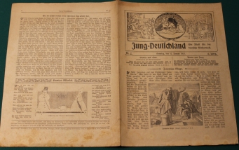 2 / 12. Januar 1913 | Jeremias Klage; A. Burg: Michel Wudicke, auch ein Held (Erzählung aus der Zeit der Befreiungskriege); Wie der Fuchs einmal einen schlimmen Tag gehabt hat | kleinere Knicke und Bestoßungen an den Heftkanten; innen sauber und insgesamt noch recht guter altergemäßer Zustand | 2 |