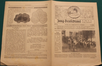 33 / 18. August 1918 | Hilfe in der Ernte; Karl Rode: Ein junger Held (2. Fortsetzung); Woher die Flockenblume ihren Namen hat; Buntes Allerlei; ... | kleinere Knicke und Bestoßungen an den Heftkanten; innen sauber und insgesamt noch recht guter altergemäßer Zustand | 2 |