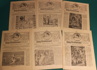 19 / 12. Mai 1918 | Exaudi; Johann Weiskirch: Der getreue Elmar und Zwerg Einbein; Vogelglück; Von Ratten und Mäusen, die ihr nicht kennt; Buntes Allerlei ; ... | kleinere Knicke und Bestoßungen an den Heftkanten; innen sauber und insgesamt noch recht guter altergemäßer Zustand | 2 |