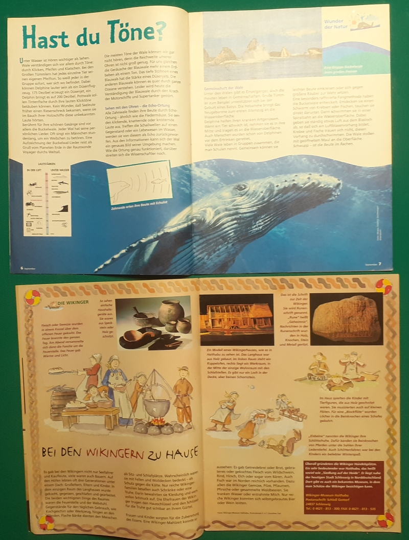 11 - November 1995 | Monatsthema: Wikinger Der Donnergott Thor im Lande der Riesen - Tiere: Der Elch (ohne das Elchposter in der Mitte des Heftes) - Basteln: Schmuck nach Wikinger-Art - Prima-Klima in der Schule? - Raten, malen, lachen - Wikinger - die Herren der Meere ... | guter altersgemäßer Zustand | 3 |