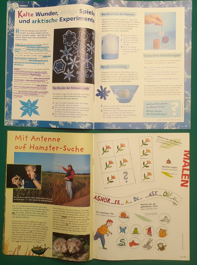 1 - Januar 1997 | Monatsthema: Tiere in Eis und Schnee Wenn der Winter kommt ... - Überleben in klirrender Kälte - Eiskalte Riesen aus der Vergangenheit - Polar-Spiel - Der Lappe Reidar erzählt vom Ende der Eiszeit - Riesenposter im Mittelteil: Kaiserpinguine - Kalte Wunder, eisige Spiele und arktische Experimente - Raten, Malen Lachen ... | sehr guter altersgemäßer Zustand | 3 |