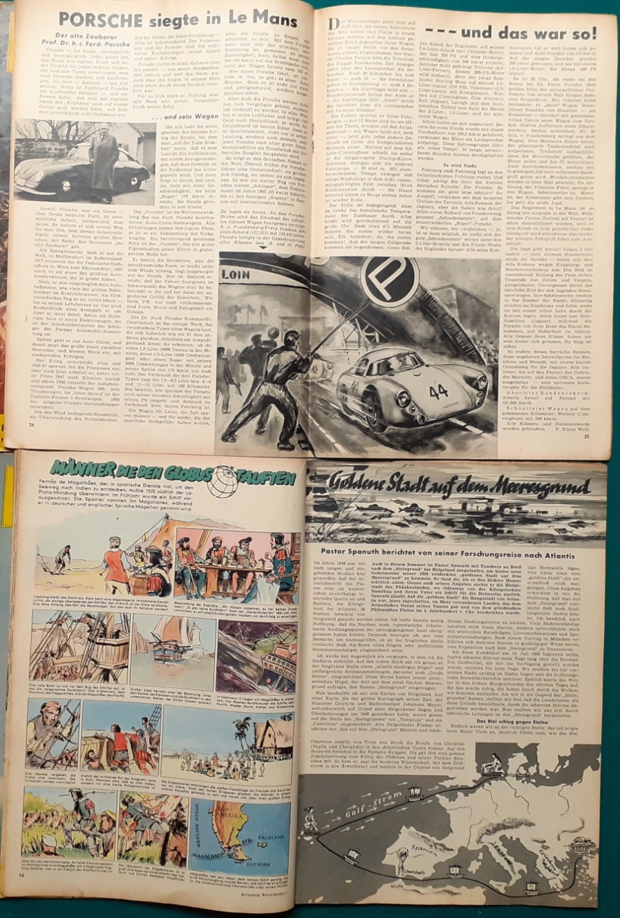 | 4 | Der tödliche Durst: Ein lebensgefährliches Abenteuer im Matto Grosso; Über Fußball-Nationalspieler Jupp Posipal; Fischfang vor der brasilianischen Küste; Über Henry Ford, den König des Automobils; Comic: Männer, die den Globus tauften; Pastor Spanuth berichtet von seiner Forschungsreise nach Atlantis; Hoppe: Stefan, Ille und die Pferde (Episode); Über Dahlien; Über das Land Indonesien; Klaus Störtebeker (Comic); Comic: Benn und Bini | guter altersgemäßer Zustand | 6 |