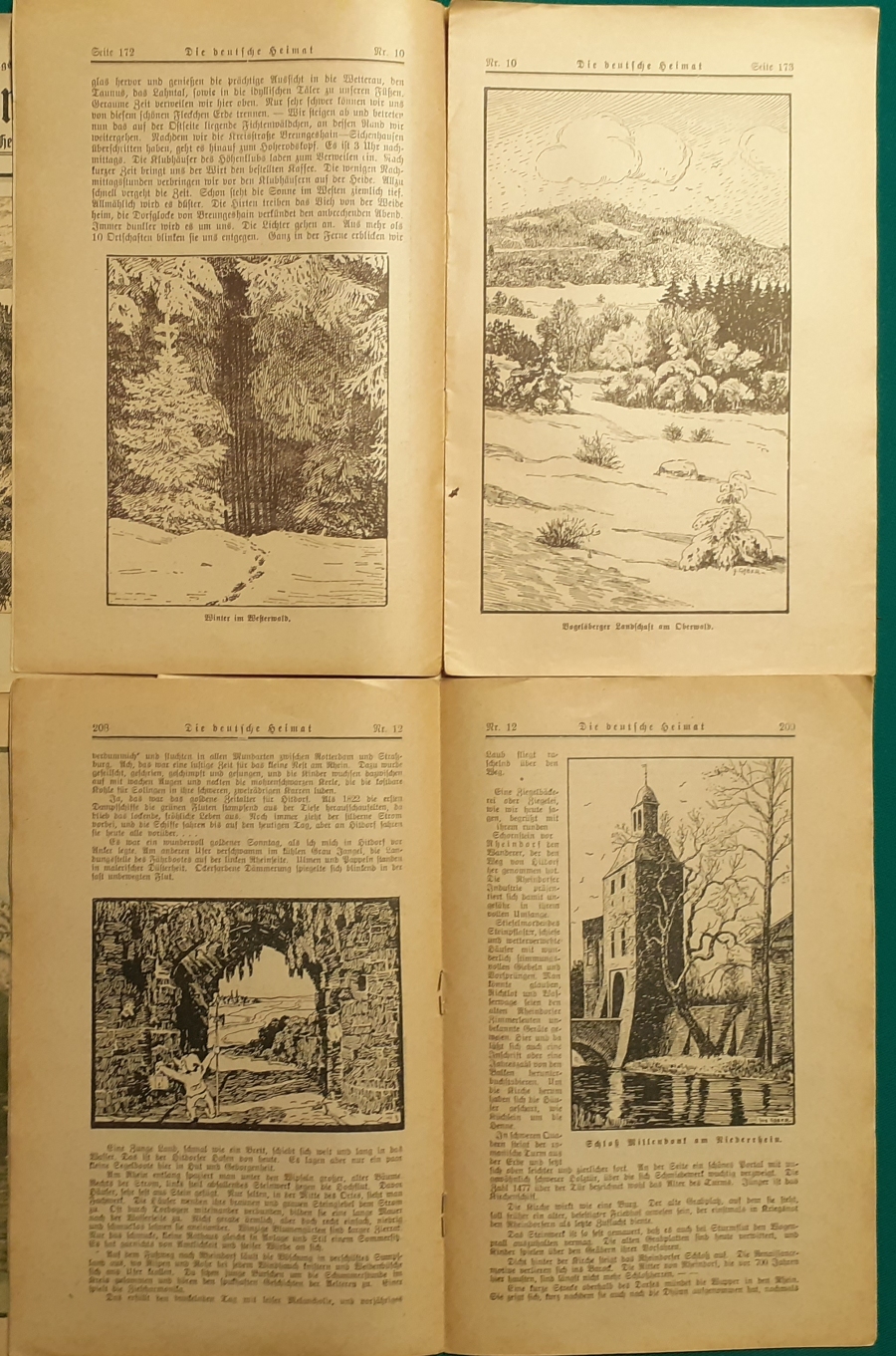 | 11 / Februar 1928 | Ernst Ricolai: Erster Schneefall im Schwarzwald; W. Kögel: Winter im Erzgebirge; Karl Stieler: Eine Winterreise an den Königssee; Fritz Leukenthaler: Heimkehr | guter altersgemäßer Zustand | 4 |