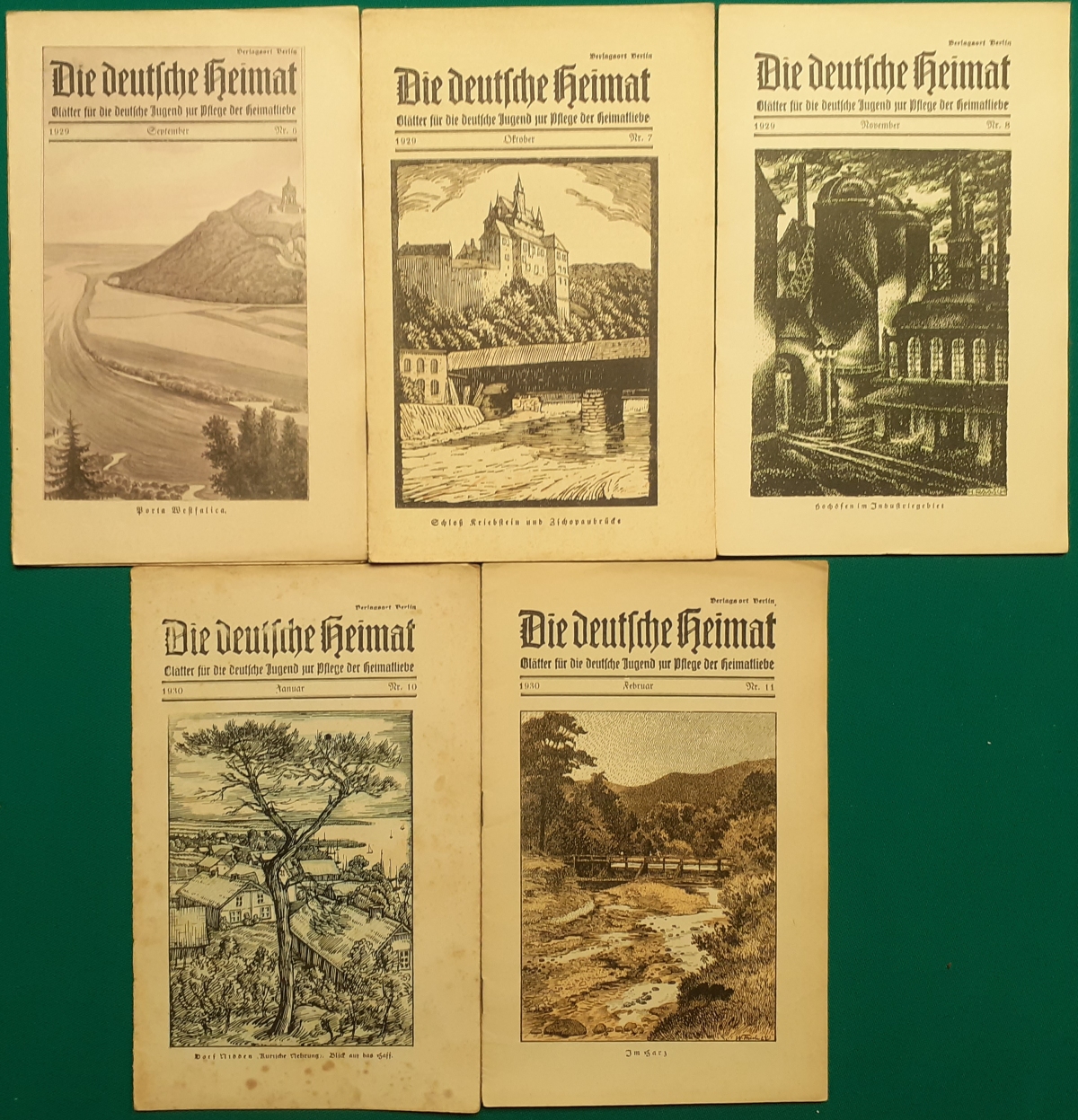| 5 / August 1929 | Fr. Pferdmenges: Im Siegerland; Reinhard Gädeke: Die Hauberge; H. Sindermann: Die Sage von der ersten Entstehung der Kapelle Schönenberg | guter altersgemäßer Zustand | 4 |
