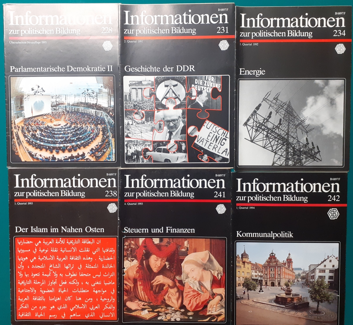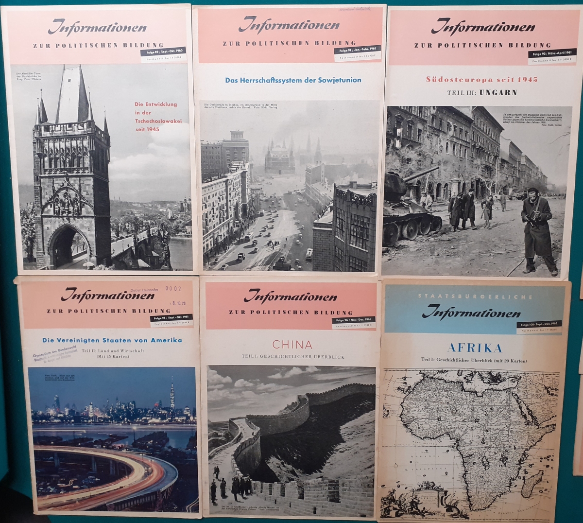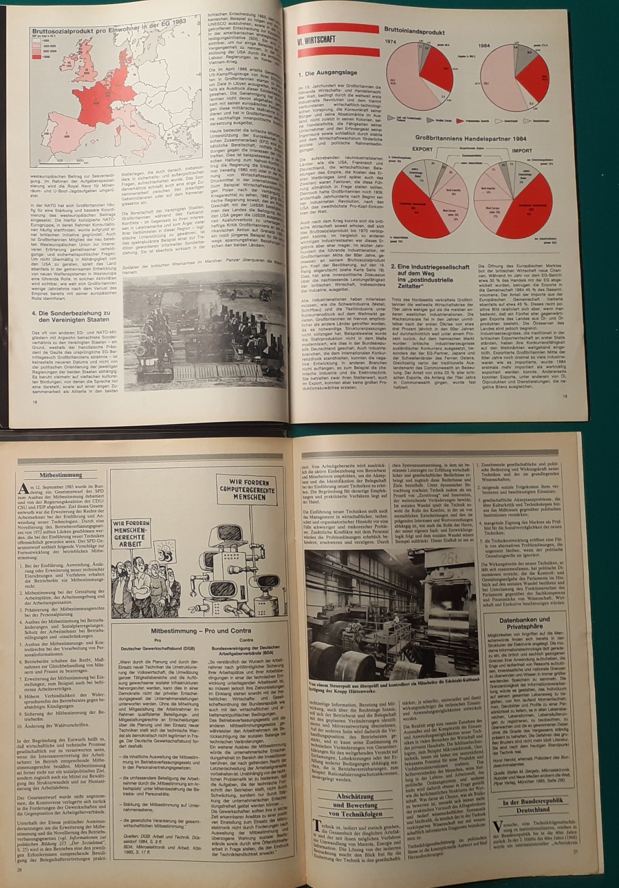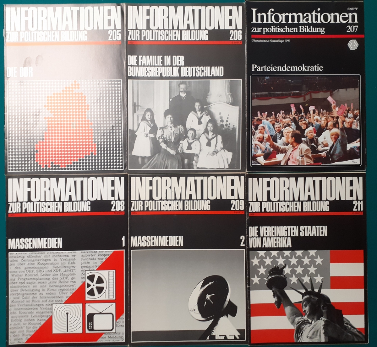 Herausgeber: Bundeszentrale für Heimatdienst; seit 1963 Bundeszentrale für politische Bildung in Bonn. Die Hefte sind unter anderem "für die Hand des Lehrers" konzipiert worden. Es handelt sich um Hefte im Format 30 x 21 cm in unterschiedlichem Umfang - anfangs zwischen 20 und 40 Seiten, in den letzten Jahren 60 Seiten und mehr. Jedes Heft behandelt ein spezielles Themengebiet, zum dem umfangreiches statistisches und Bild- und Kartenmaterial gezeigt wird. Da die Hefte sich an den Politik-Unterricht an unseren Schulen richten, sind die Themen an den Inhalten der Bildungspläne der Bundesländern orientiert. Jedes Heft bringt am Ende umfangreiche Literaturhinweise. In einigen Bänden ist außerdem die Rubrik "Das Thema im Unterricht" mit Überlegungen zur methodischen und didaktischen Unterrichtsgestaltung enthalten. Außerdem sind vor allem in den 2000er Jahre ständig Hefte zu aktuellem Geschehen herausgekommen. Diese ohne Nummer erschienenen Hefte sind in die folgende Tabelle zum Jahr ihres Erscheinens integriert worden. Die Hefte haben einen guten altersgemäßen Zustand und sind weitgehend unbenutzt. |