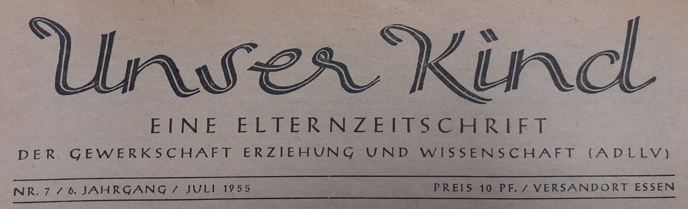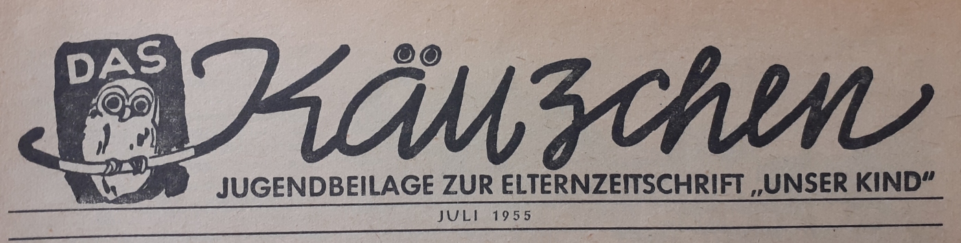 Verlag: Neue Deutsche Schule, Essen Erschienen in den 1950er Jahren zum Preis von 10 Pf. pro Ausgabe und Monat. Es handelt sich um eine achtseitige Zeitschrift aus zwei ineinander gelegten Doppelbögen im Format 31 x 23 cm. Im Innenteil der Zeitschrift befindet sich jeweils die ebenfalls achtseitige Jugendbeilage "Das Käuzchen" (im gleich großen Format), die unterhalb der folgenden Tabelle im Anschluß vorgestellt wird. |