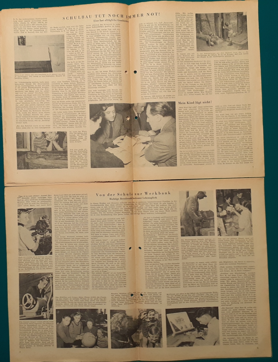 Kinder äußern sich über den Rundfunk; Werden unsere Kinder überfordert?; Der linke Peter kommt in die Schule; Ganzwortlesen im Erstunterricht der Volksschule; Schwierigkeiten des ersten Schuljahres; Kampf der Kinderlähmung; Aus Schleswig-Holstein; Kinderzimmer - geschickt möbliert; Goße Räume - gut aufgeteilt - Eine Schürze für die große Tochter | links gelocht; guter altergemäßer Zustand | 4 |