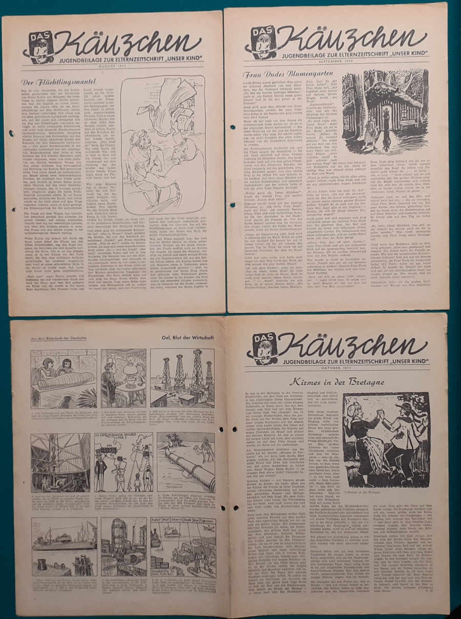 Kirmes in der Bretagne; Auch das Obst hat seine Geschichte; Gaukler, Zeitungssinger und Wunderdkotoren; Der Siebenschläfer; Selbstgefertigte Bastdeckchen; So funktioniert die Notbremse; Ratespiele; Bilderbuch der Geschichte: Oel, Blut der Wirtschaft | links gelocht; guter altergemäßer Zustand | 4 |
