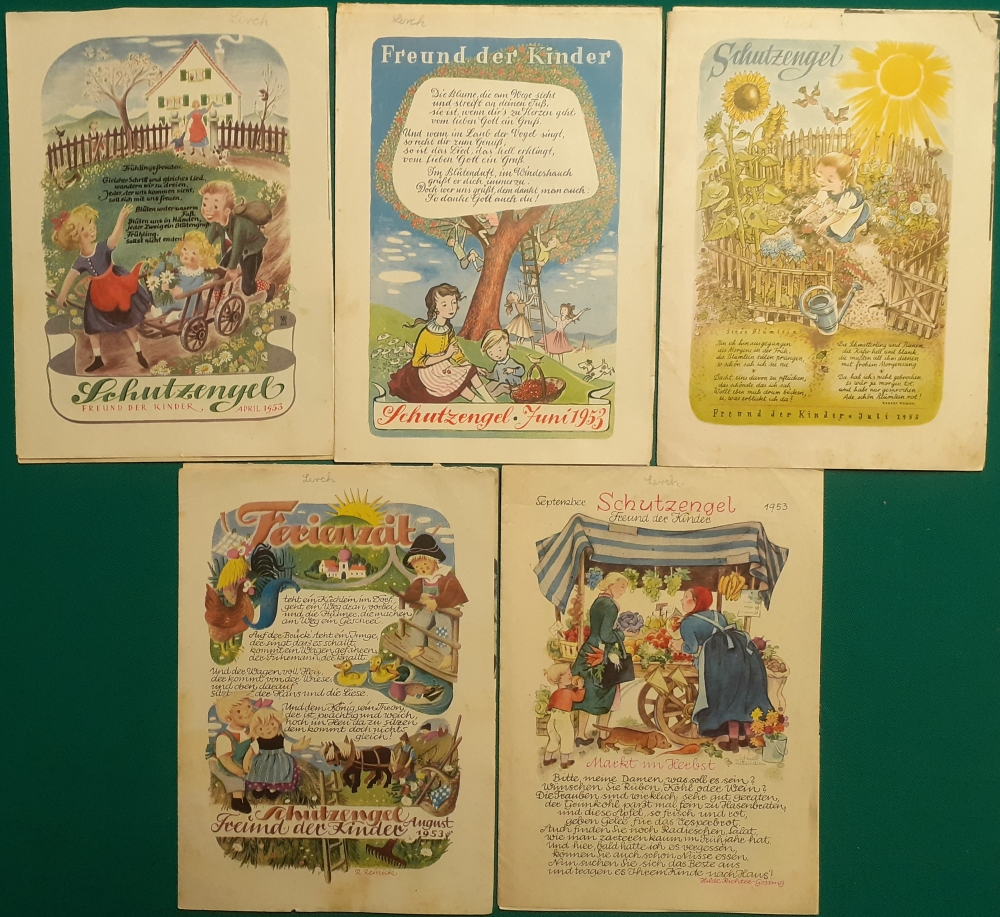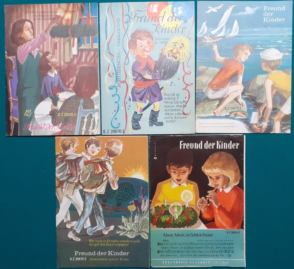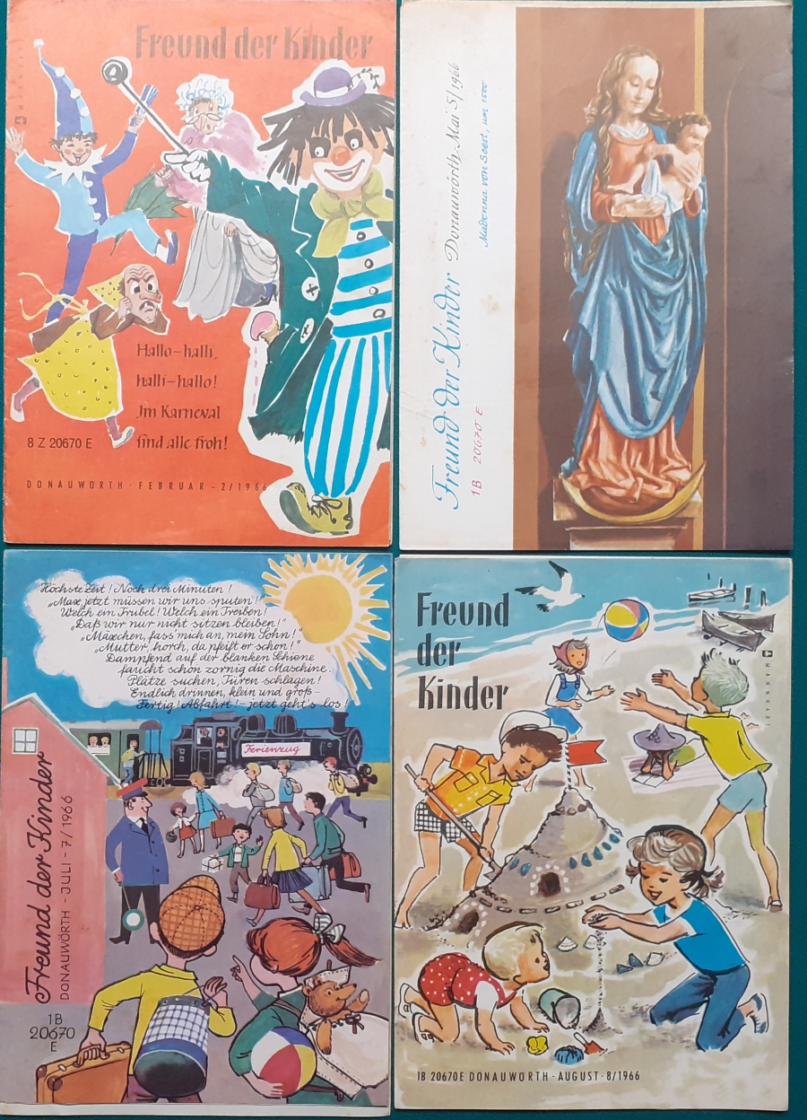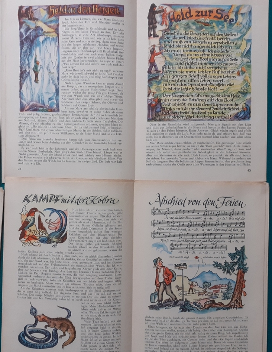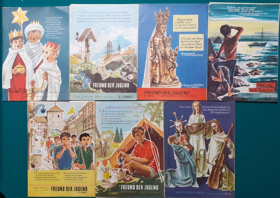 August 1958 | Maria fuhr gen Himmel auf, Bergkameradschaft; Rechnen, zum Spaß; Denkwürdige Reise einer Puppe; Der erste Flug über die Alpen; Wer ist Louis Pasteur?; Das Geheimnis der Dschunke; Scherenschnitt | Wunderbare Illustrationen von Michael und Margarete Gsellmeier; sehr guter altersgemäßer Zustand | 4 |