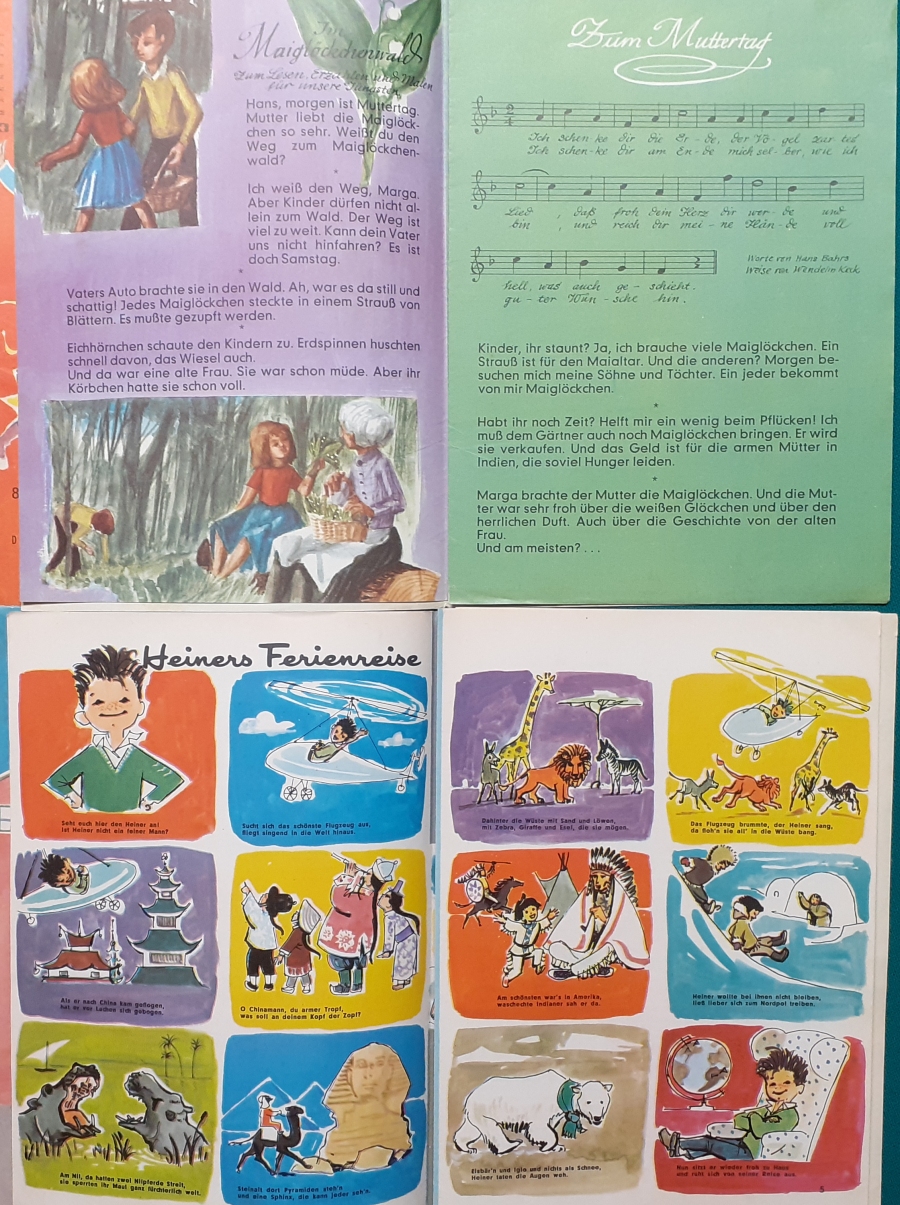 5 / 1966 | Wer half Kaju?; Lied zum Muttertag; Im Maiglöckchenwald; Emmi und das Kind aus dem Gastarbeiter-Hochhaus; Kolumbusvöglein; Wir radeln durch die Welt; Wie Blacky ein Feuerwehrhund wurde; Wir basteln unseren Maialtar als Glasfenster | Schöne Illustrationen von Willi Probst; jeweils vier Doppelblätter ineinander gelegt: zusammen 16 Seiten; Kanten bestoßen; guter altersgemäßer Zustand | 4 |