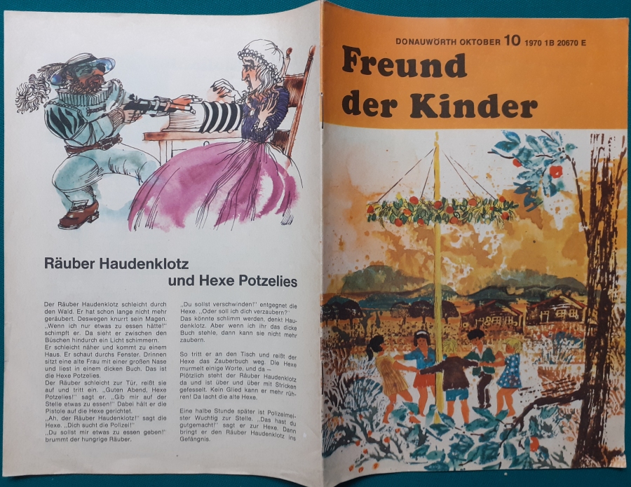 10 / 1970 | Besuch bei König Schlafmütze; Wofür wir danken müssen; Weißt du, was dein Vater tut?; Wie Vater und Mutter rechnen lernten; Erntedank für Lebertran; Chr. Meinwerk: Die Dingos von der 46. Station; Basteln: Allerlei Getier aus Korken - Wir bauen uns ein Dorf; Vom Esel Ärgerlich, der so gern ein Zebra sein wollte; Der Gedankenleser; Räuber Haudenklotz und Hexe Potzelies | Schöne Illustrationen von Michel und Lieselotte Mende; Umfang 20 Seiten - normal geheftet; Heftkanten etwas bestoßen; guter altersgemäßer Zustand | 4 |