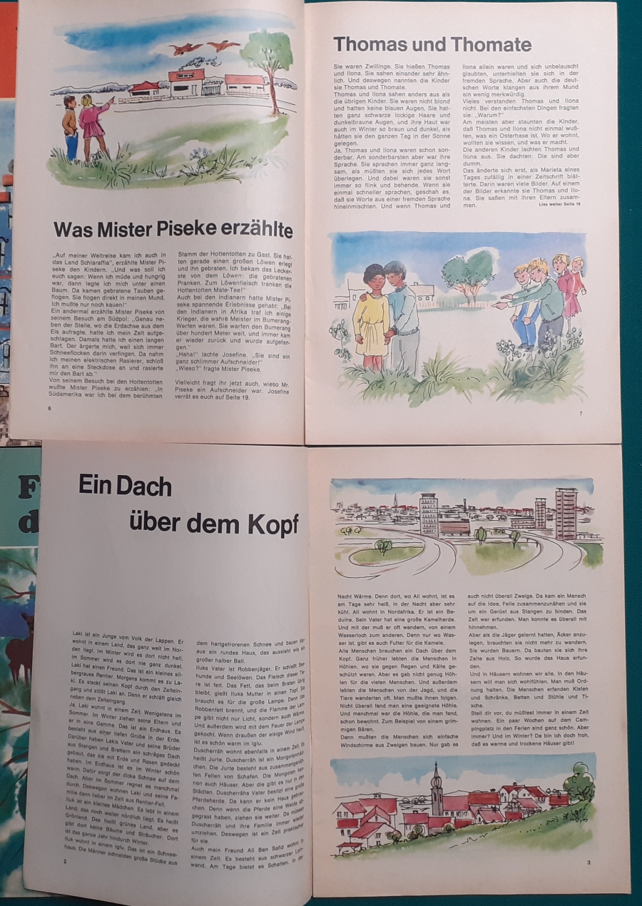 7 / 1971 | Von Häusern und Bauen; Rote Ziegel und ein neuer Freund v. Gudrun Keucher; Die Baustelle v. Rosemarie Künzler-Behncke; Das Gotteshaus v. Cornelia Mensching; Der Olympiaturm v. R. Künzler-Behncke; Wie Menschen in Kamerun wohnen v. Rolf Buron; | Schöne Illustrationen von Monika Böving; Umfang 20 Seiten - normal geheftet; Heftkanten etwas bestoßen; guter altersgemäßer Zustand | 3 |