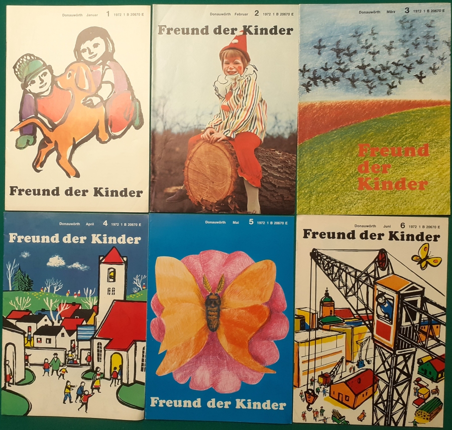 6 / 1972 | Ein Schmetterling besucht den Kranführer v. Ela Blumhoff-Schadt (Schreibschrift); Das Baggerloch; Die Windreise; Bischof Winfried fällte einen Baum v. A. Baur; Herr Liebel und die Stare; Eine kleine Wildschweinerei v. Lotte Prechter-Kahle | Schöne Illustrationen von Jochen Bartsch; Umfang 20 Seiten - normal geheftet; Heftkanten etwas bestoßen; guter altersgemäßer Zustand | 3 |