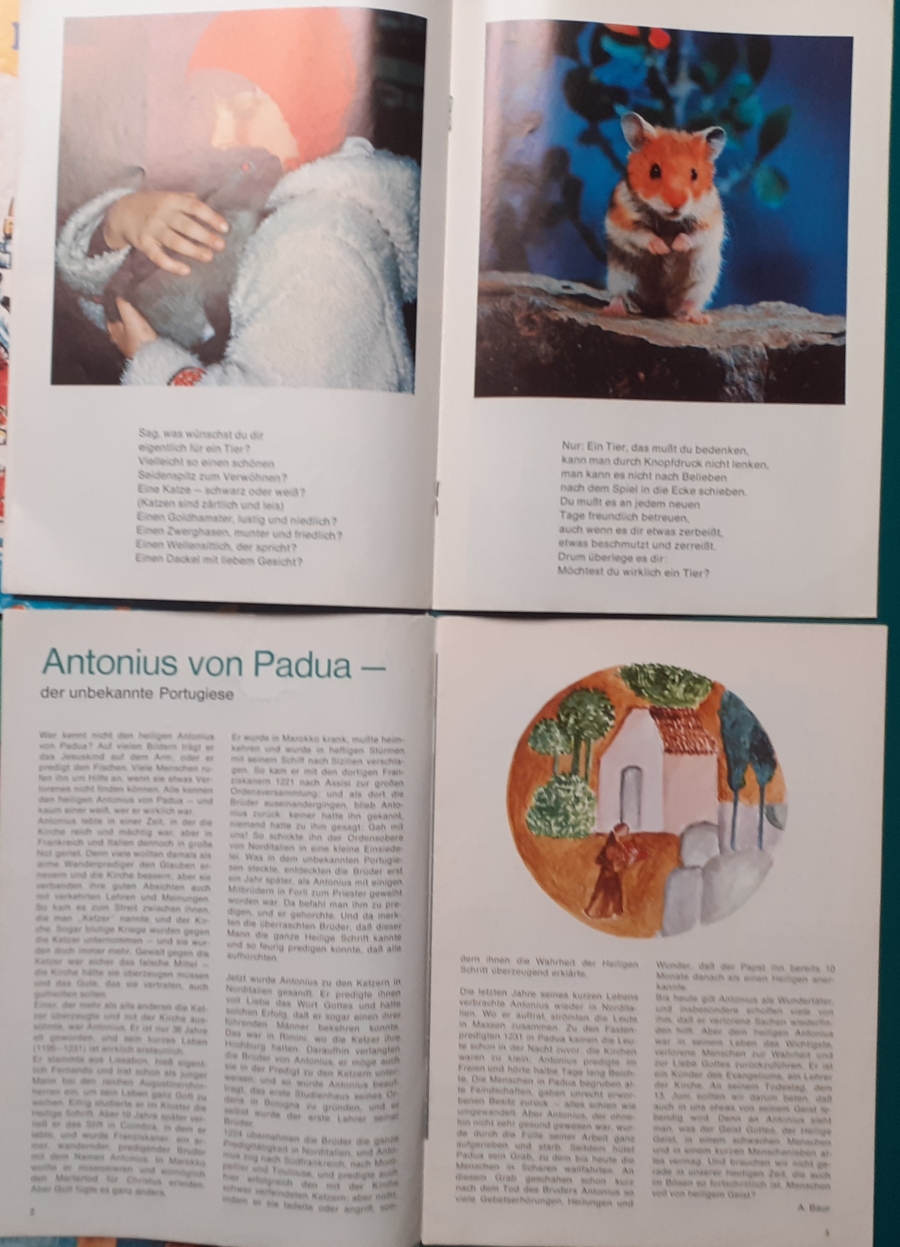 6 / 1974 | Antonius von Padua - der unbekannte Portugiese v. A. Baur; Der Teppich, der nicht mehr fliegen wollte (Scheibschrift) v. Sybille Mews; Fliegen fängt auf der Erde an; Das Flugzeug; Die Windvogelhochzeit; Wir basteln eine Windmühle | Schöne Illustrationen von Monika Böving; Umfang 20 Seiten - normal geheftet; Heftkanten etwas bestoßen; guter altersgemäßer Zustand | 3 |