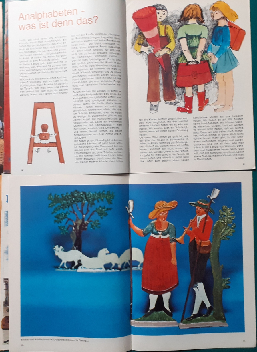 9 / 1972 | Antonia kommt in die Schule; Was so alles in einem Marionettentheater passiert v. Elga Schadt; Levi findet einen Freund für immer v. A. Baur; Vögel fliegen weit v. Jürgen v. Hollander; Wir basteln Falthäuser | Schöne Illustrationen von Barbara von Johnson; Umfang 20 Seiten - normal geheftet; Heftkanten etwas bestoßen; guter altersgemäßer Zustand | 3 |