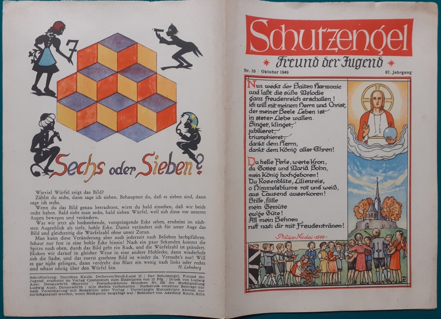 9 / September 1950 | Im Kampf wider den Vesuv - Zum Fest des heiligen Januarius am 19. September; Kampf mit der Kobra; Abschied von den Ferien von H. Esser und J. N. Vogt; 75 Jahre der Kinder- und Jugendzeitschrift "Schutzengel"; Bastelanleitung: mit Pfeil und Bogen | Wunderbare Illustrationen von Horst Kühnel; sehr guter altersgemäßer Zustand | 4 |