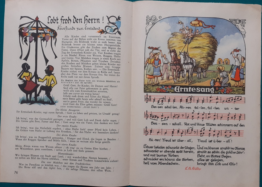 10 / Oktober 1949 | Gedicht von Philipp Nicolai; Der Rosenkranz; Feierstunde zum Erntdank; Erntesang von Hölty; Das gescheite Bäuerlein; Rätsel von H. Lehnberg | Wunderbare Illustrationen von Adelheit Kautz; sehr guter altersgemäßer Zustand | 5 |