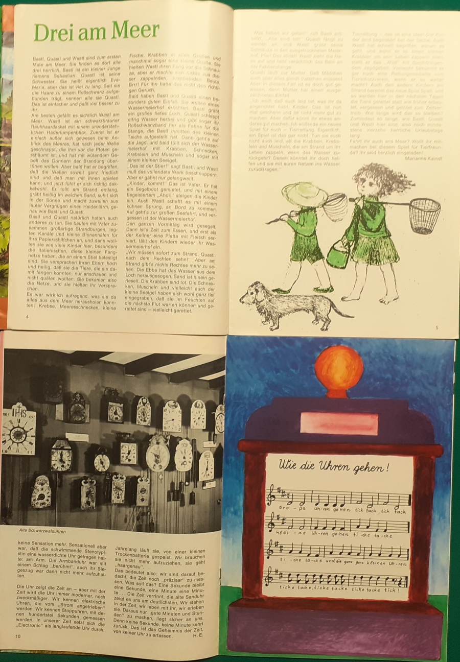 1 / 1978 | Mach es wie die Sonnenuhr v. A. Baur; Uhren-Kuckucke v. Heinrich Ludwig; Die Uhr geht mit uns; Silvester v. Rosemarie Künzler-Behncke; Wir basteln ein Puzzle-Spiel | Schöne Illustrationen diverser Künstler; Umfang 20 Seiten - normal geheftet; Heftkanten etwas bestoßen; guter altersgemäßer Zustand | 3 |