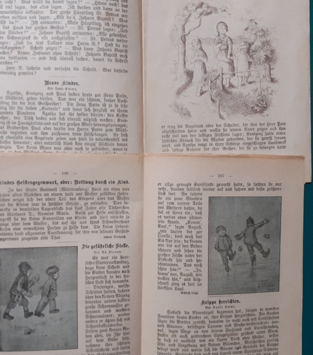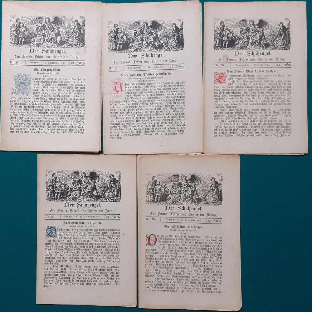 Ein Schutzengelkind v. Veritas; Der Eremit im Walde und das Buch v. Tante Emmy; Die fleißige Gertrud; Plauderplätzchen; Bildgeschichte von den neugierigen Wichtelmännchen; Rätsel | Schöne Illustrationen; Kanten bestoßen; guter altersgemäßer Zustand | 4 |