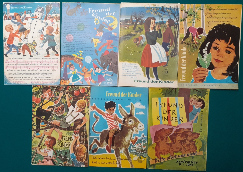 7 / 1963 | Unsere Liebe Frau von der guten Heimkehr; Der Vogelbaum, Vom kleinen Fuchs, der blau sein sollte; Mücke Sirresisi; Das Schneckenspiel; Ein lustiger Ferienbrief; Als die Tiere einmal sprechen konnten; Kleine Tiere - unsere Freunde | Schöne Illustrationen von Hanns und Maria Mannhart; jeweils vier Doppelblätter ineinander gelegt: zusammen 16 Seiten; Kanten bestoßen; guter altersgemäßer Zustand | 4 |