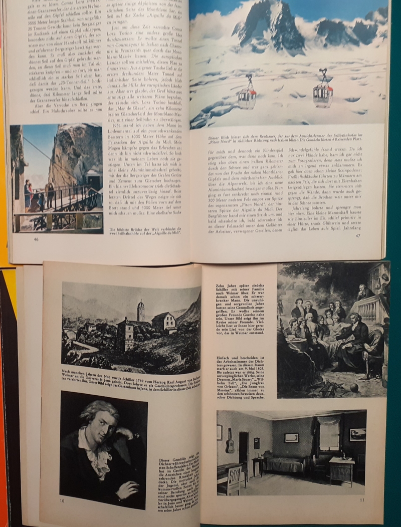 1957 | Vier Jungen entdecken die bedeutendste Höhle der Welt v. Heinz Sponsel; Am Hofe Karls des Großen v. Adolf Angermann; Ein Tag am Hofe des Sonnenkönigs; Über den Dächern der Hochhäuser von New York; Pompeji versank in Glut und Asche; Die Reise nach Siwa (Oase in Nordafrika); Bei Beduinen zu Gast; Steppenräuber: Im abessinischen Busch; Tiere flüchten vor dem Winter; Badminton-Sport; ... | guter altersgemäßer Zustand | 5 |