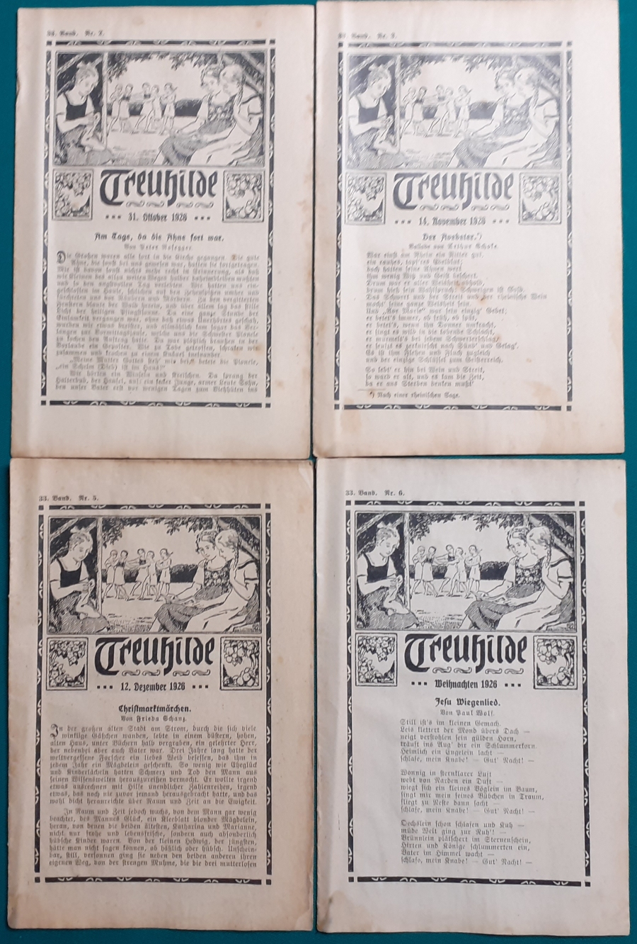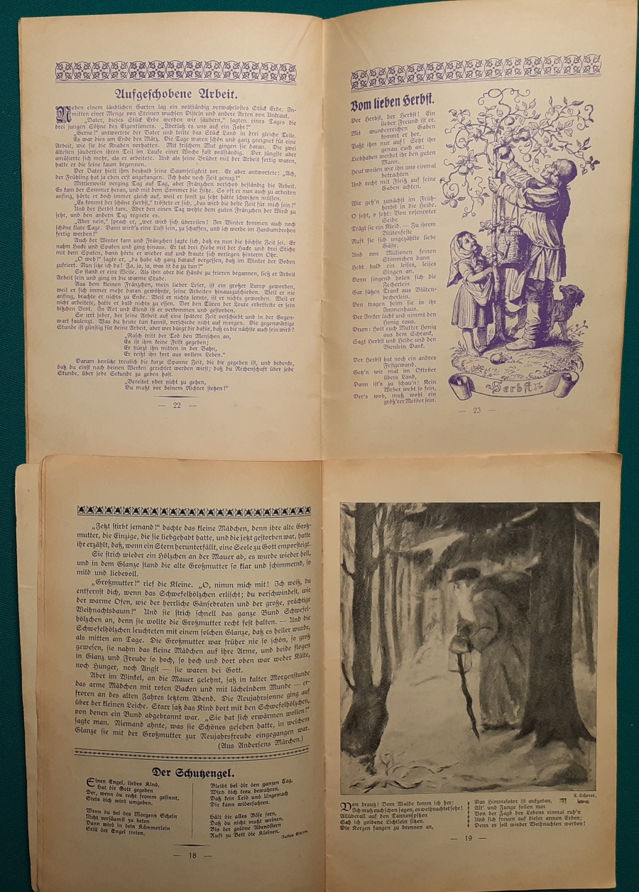 Anstalt Bethel Die Hefte erschienen um 1920; sie haben in der Regel einen Umfang von ca. 10 Seiten. Das Format ist jeweils 18 x 11,5 cm. Abbildungen von vielen zeitgenössischen Künstlern (z.B. auch Ludwig Richter); Inhalt der Hefte: Gedichte - Kleine Geschichten usw. O selig, selig alle Welt,
