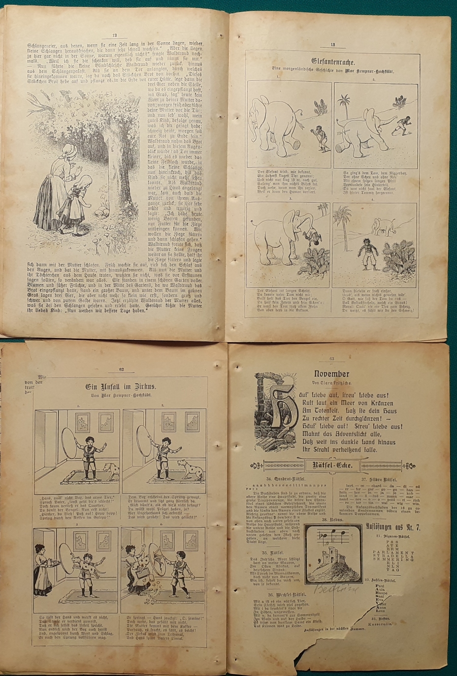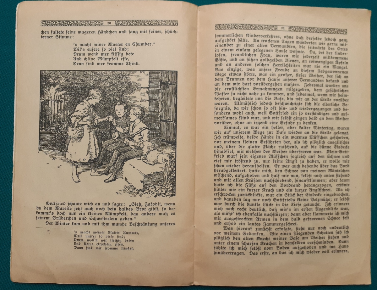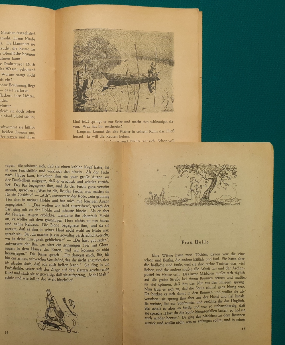 Kindergeschichten, Reime und Bilder Ausgabe um 1920, 32 Seiten, Papierränder beschädigt, vorn und hinten mit Klebeband