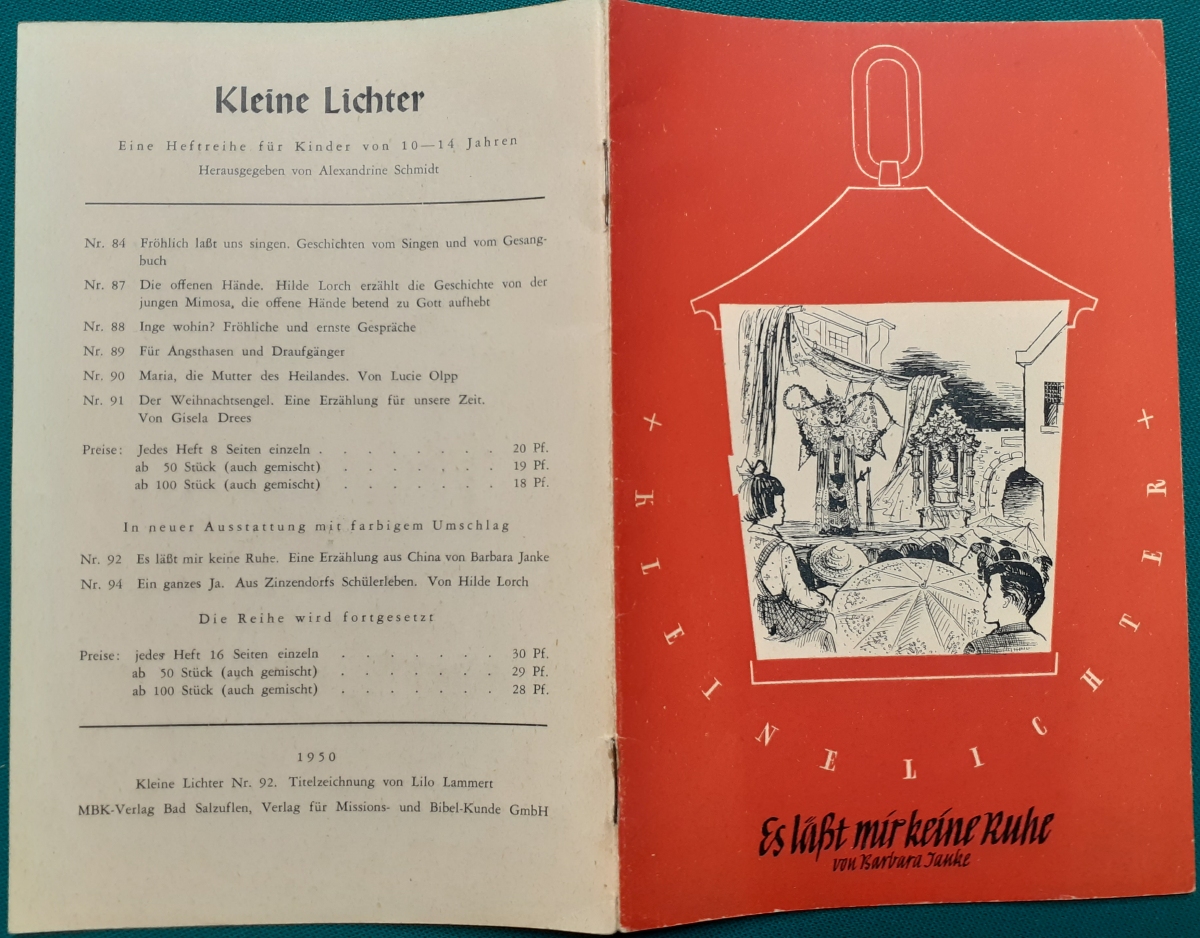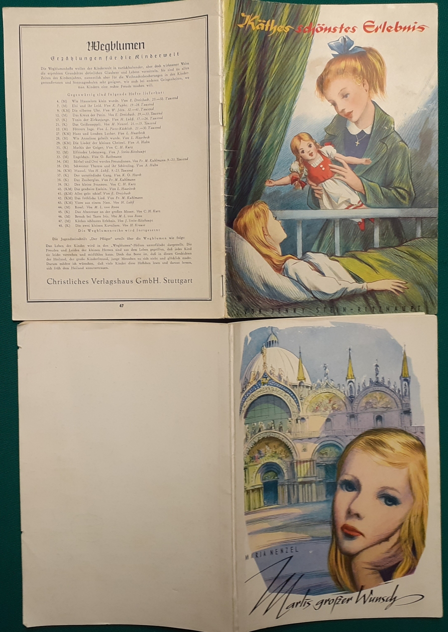 Erzählungen für die Kinderwelt im Christlichen Verlagshaus Stuttgart; aus den 1930er bis 1960er Jahren, es handelt sich um Erzählungen für Jungen und Mädchen; Umfang jeweils 32 Seiten; die Hefte erschienen in den 1950er/1960er Jahren im Format ca. 20,5 x 14 cm; die Vorkriegsbände haben ein größeres Format: 21,5 x 14,5 cm.