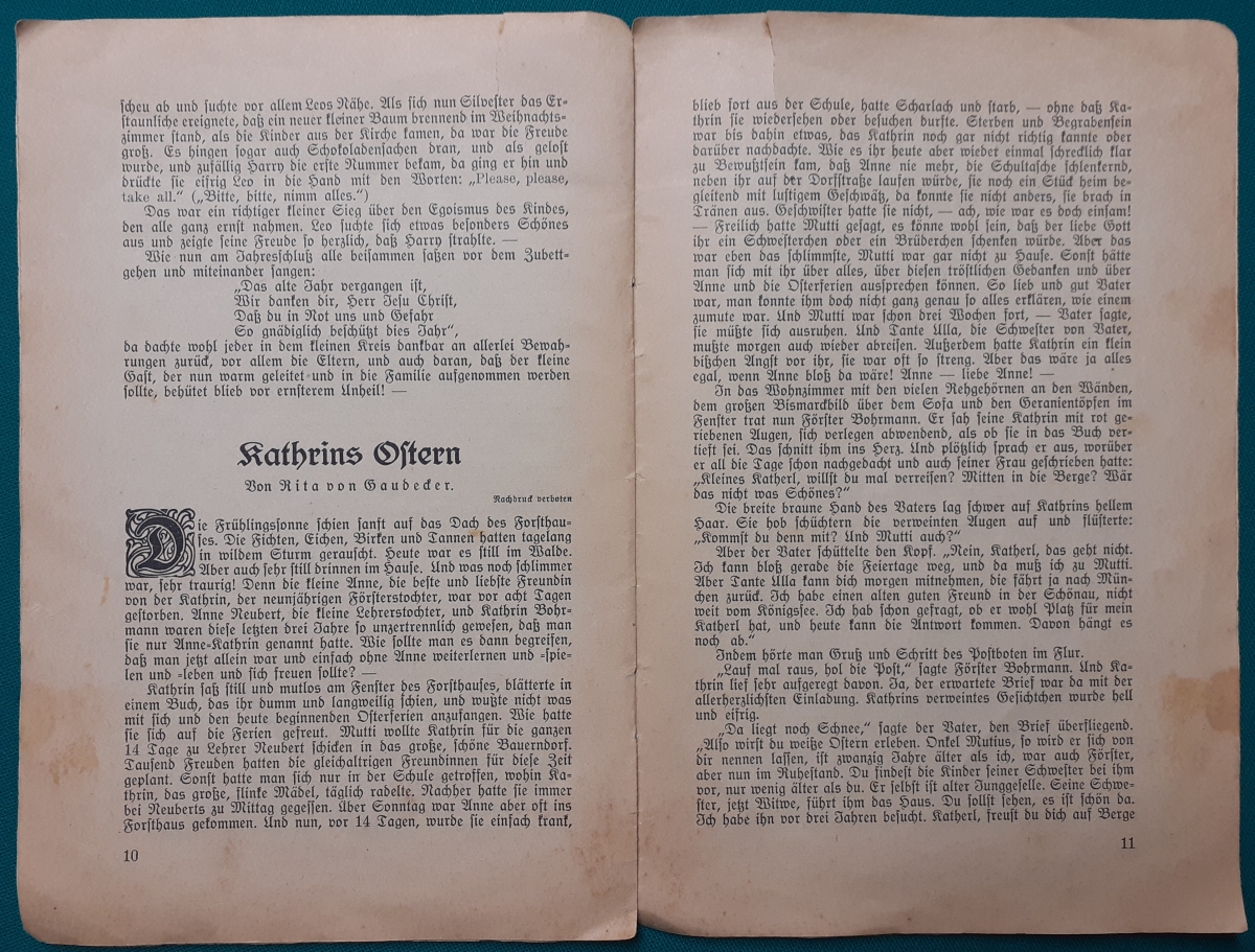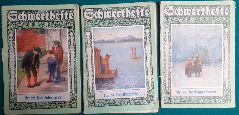 12 | Rita von Gaudecker | Der fremde Vetter | Ausgabe um 1920von 1948; 16 Seiten; an den Heftkanten bestoßen; div. Knicke am Einband; fleckig; alles gut lesbar und vollständig; noch befriedigender altersgemäßer Zustand | 3 |