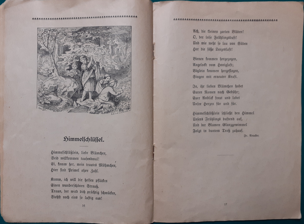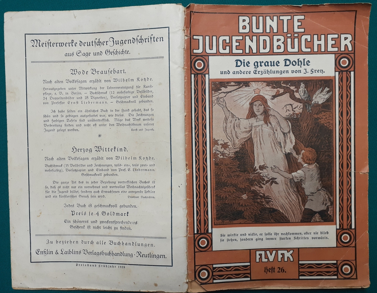 Ausgabe von 1928, 34 Seiten; an den Heftkanten bestoßen; kleine Beschädigung am Heftrücken; insgesamt recht guter altersgemäßer Zustand | 4 |