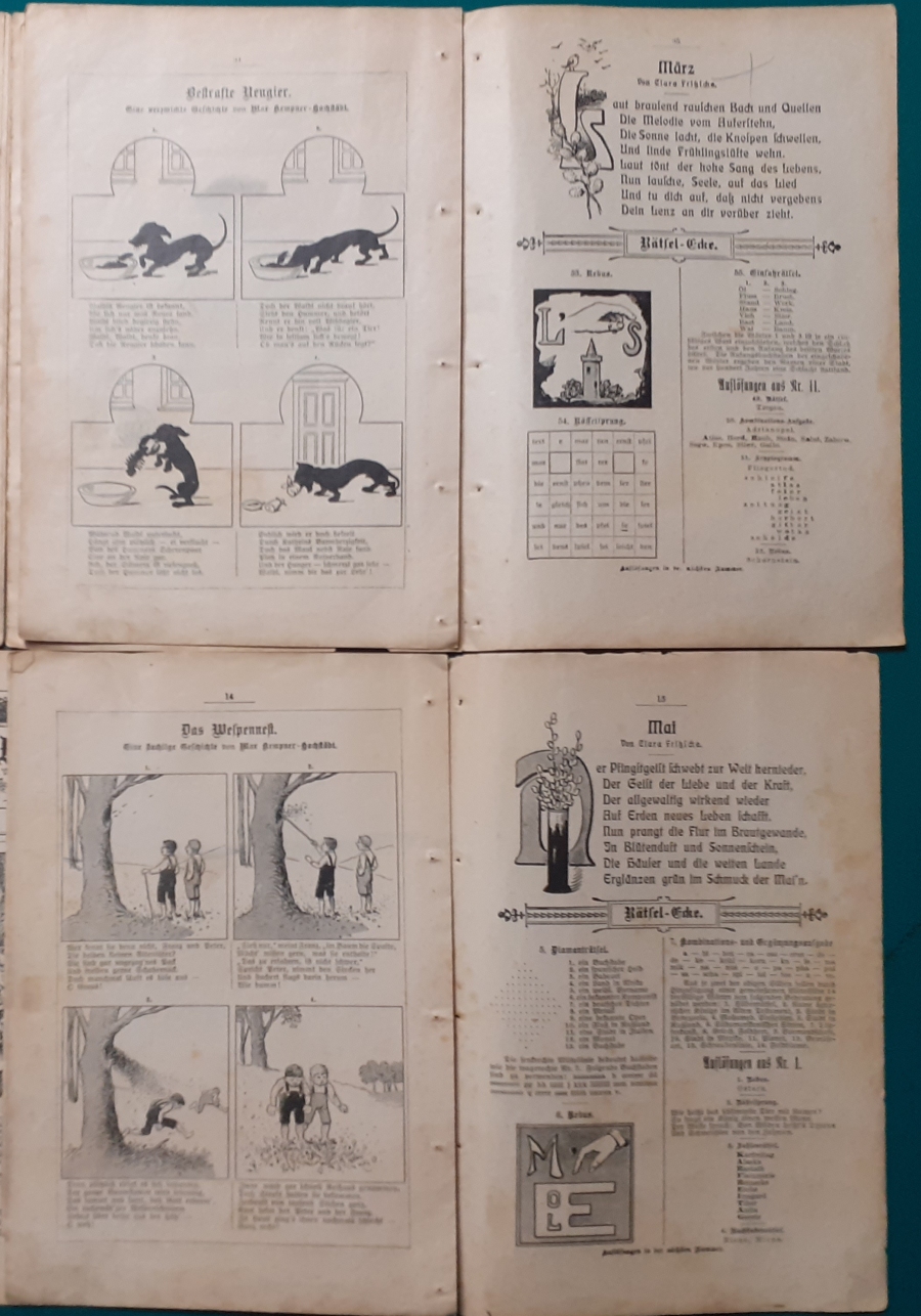 Es handelt sich um zweimal geheftete Hefte im Format 21 x 14 cm und 16 Seiten; erschienen ca. in den 1930er Jahren.