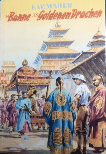 Vorderes Einbandbild in F. W. Mader: Im Banne des Goldenen Drachen Ausgabe von1955; siehe auf unserer Seite: Ausgaben von F. M. Mader |