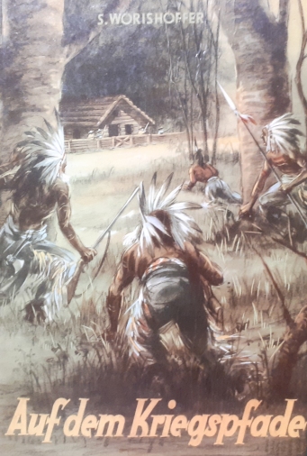 Vorderes Einbandbild in Sophie Wörishöffer: Auf dem Kriegspfade Ausgabe von 1955; siehe auf unserer Seite: Ausgaben von Sophie Wörishöffer |