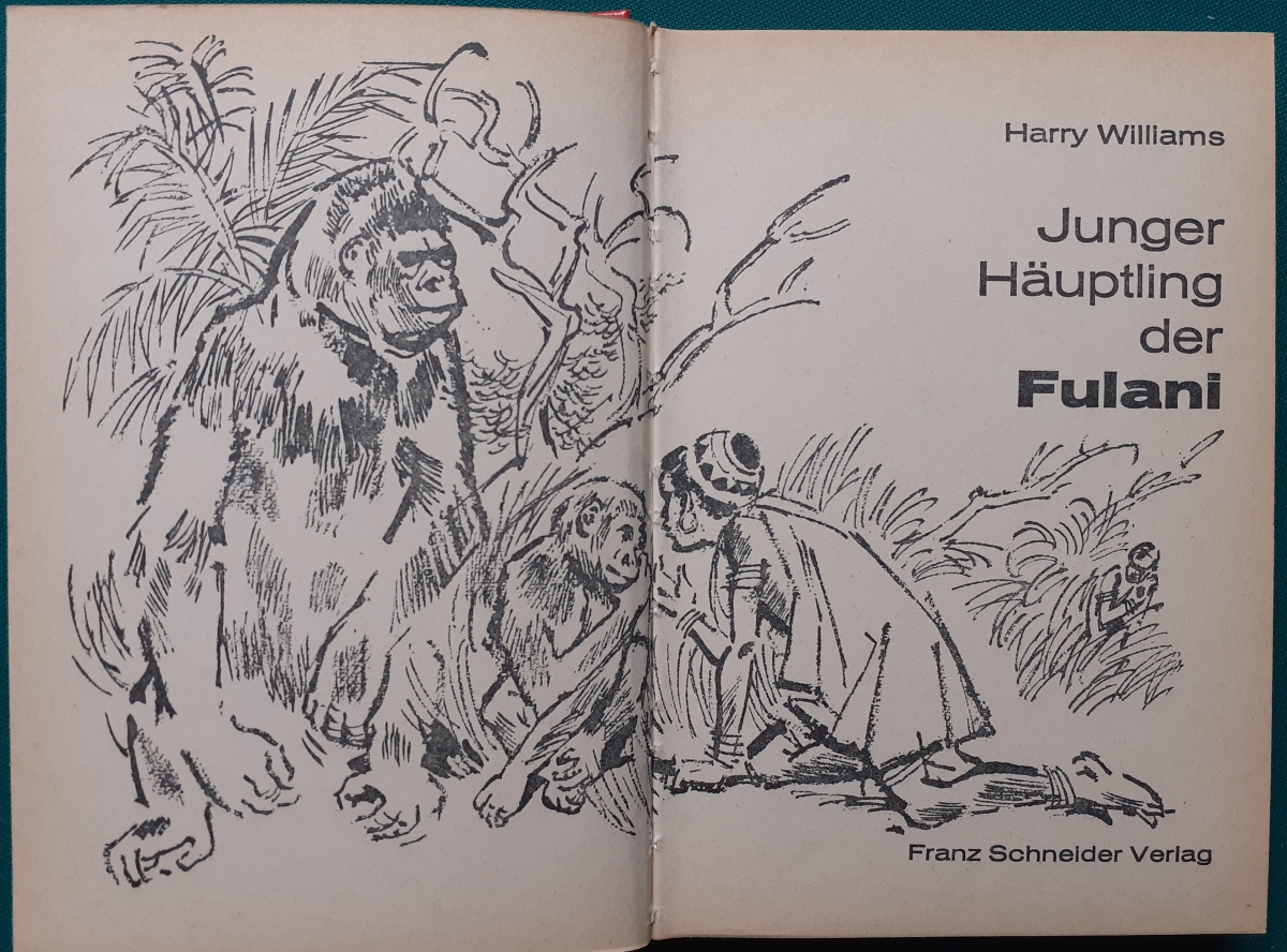 Titelbild in Harry Williams: Junger Häupling der Fulani Ausgabe im Schneider Verlag von 1963; siehe auf unserer Seite: Schneider-Lackausgaben der 1950er bis 1990er Jahre |