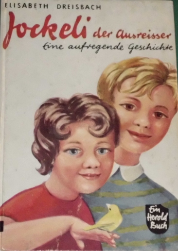 Vorderes Einbandbild in Elisabeth Dreisbach: Jockeli, der Ausreisser; Ausgabe von 1955; siehe auf unserer Seite: Kinderbücher - Ausgaben von Elisabeth Dreisbach: Jockeli, der Ausreisser |