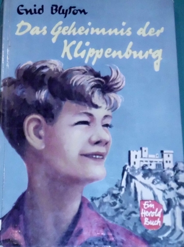 Vorderes Einbandbild in Enid Blyton: Das Geheimnis der Klippenburg Erstausgabe von 1955; siehe auf unserer Seite: Ausgaben von Enid Blyton |