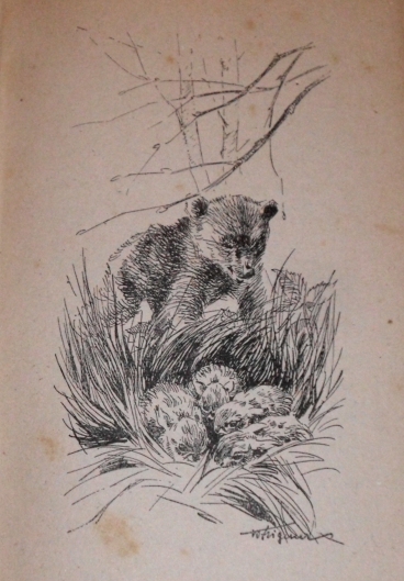 Innenillustration auf Seite 31 im Buch von Erich Kloss: Karpatenbären; Ausgabe von 1947; siehe auf unserer Seite: Tierbuchautoren mit dem Anfangsbuchstaben K |