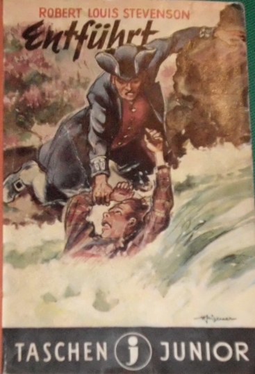 Vorderes Einbandbild in Robert Louis Stevenson: Entführt Ausgabe der frühen 1950er Jahre; siehe auf unserer Seite: Taschenjunior-Bücherei |