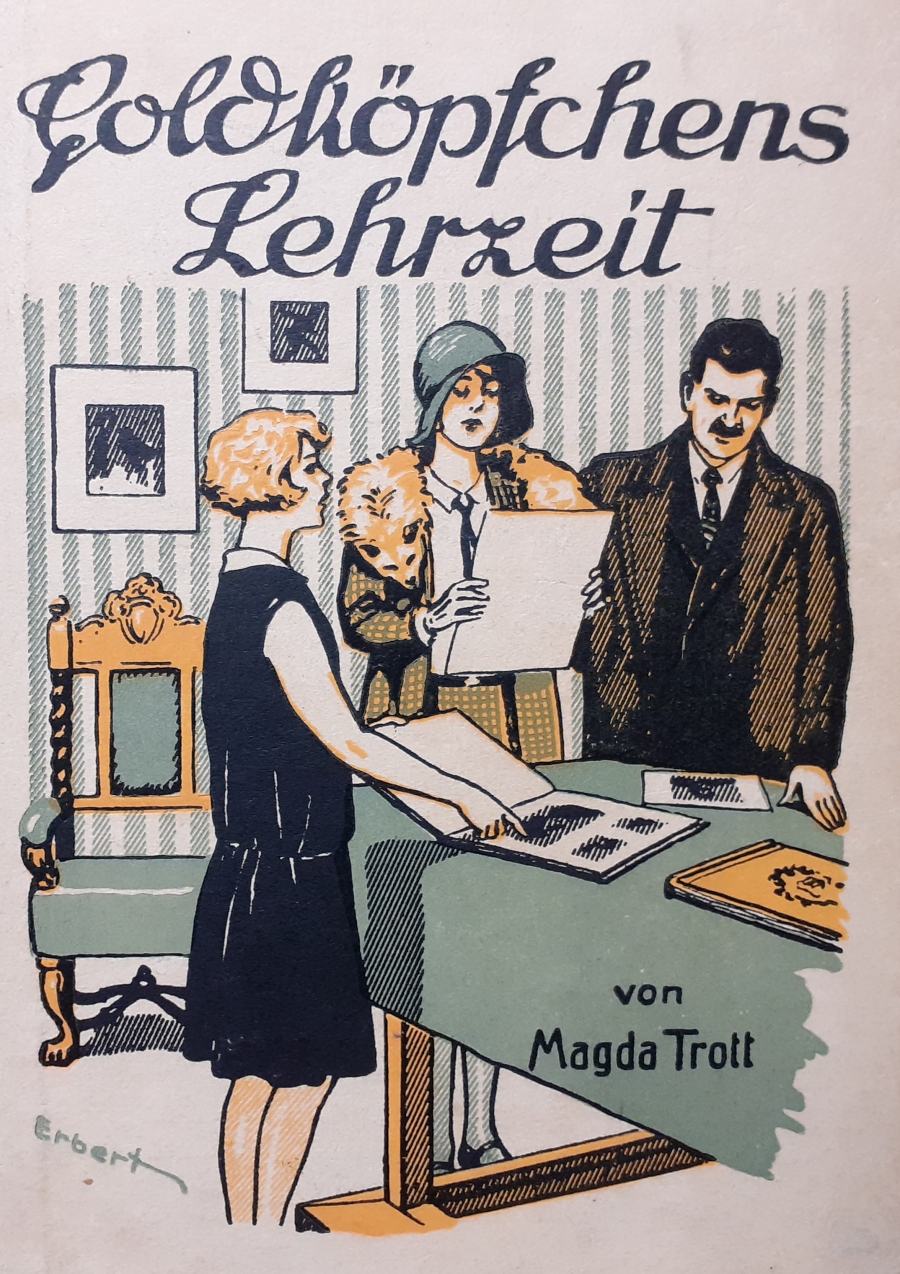 Einband-Illustration in Magda Trott: Goldköpfchens Lehrzeit;